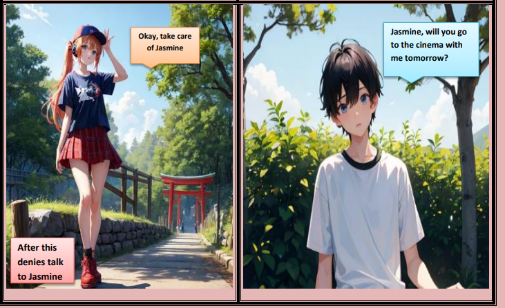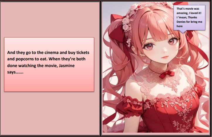 This is my first comic, This is a romantic and fantasy comic, In this comic you meet Jasmine who is the main character of this comic, she is a kind_hearted Baker girl, and Denies is also a main character of the story, who is the hot singer, but Jasmine didn't like this type of boys, so Denies changed himself for her, and Noah who is the friend of Jasmine liked Denies, so let's see, Denies will change himself for Jasmine and success the heart of Jasmine, or will fail?