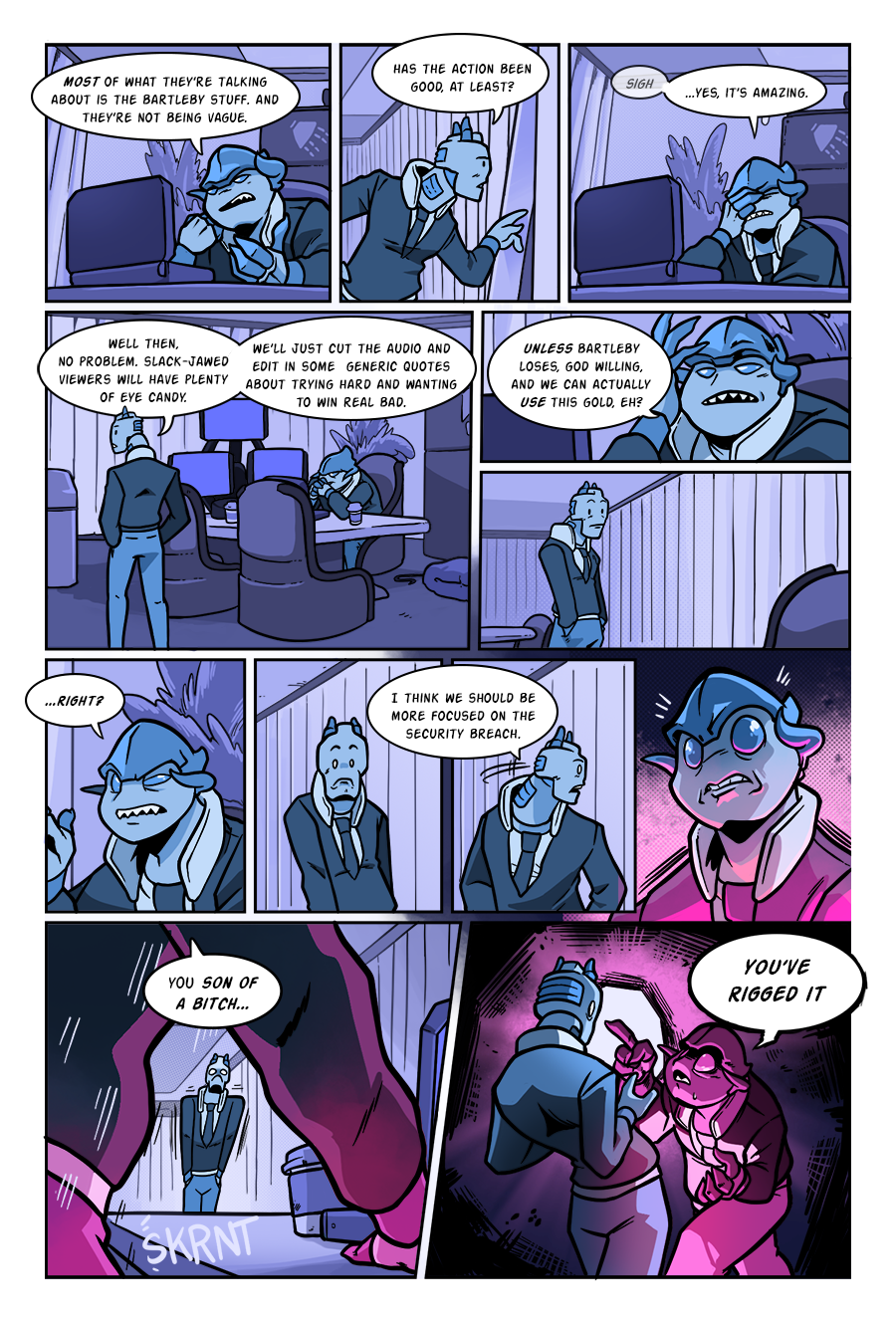 the facial expressions on this page go crazy this is so so so so so so so juicyyyy.... oh i like the color switch too especially since you always color code different "sides" the pink is both dramatic and also satisfying to see them visually "switching teams" yknow