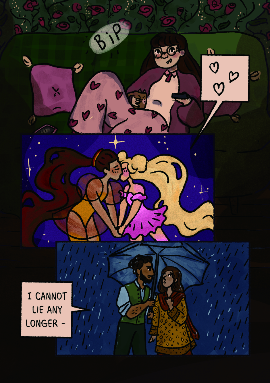 Abby, Jess and Marjan are three teen friends in a cosy, supernatural friendly town. But now, Abby’s vampiric bloodlust is starting to manifest, Marjan’s getting really interested in witchcraft, and Jess’ first ever werewolf transformation is officially happening, whether they like it or not! Will they be able to navigate these monstrous transformations and the feelings that come along with them?