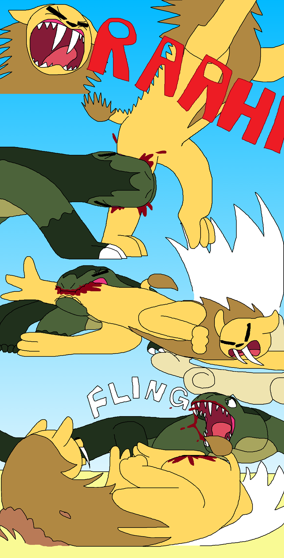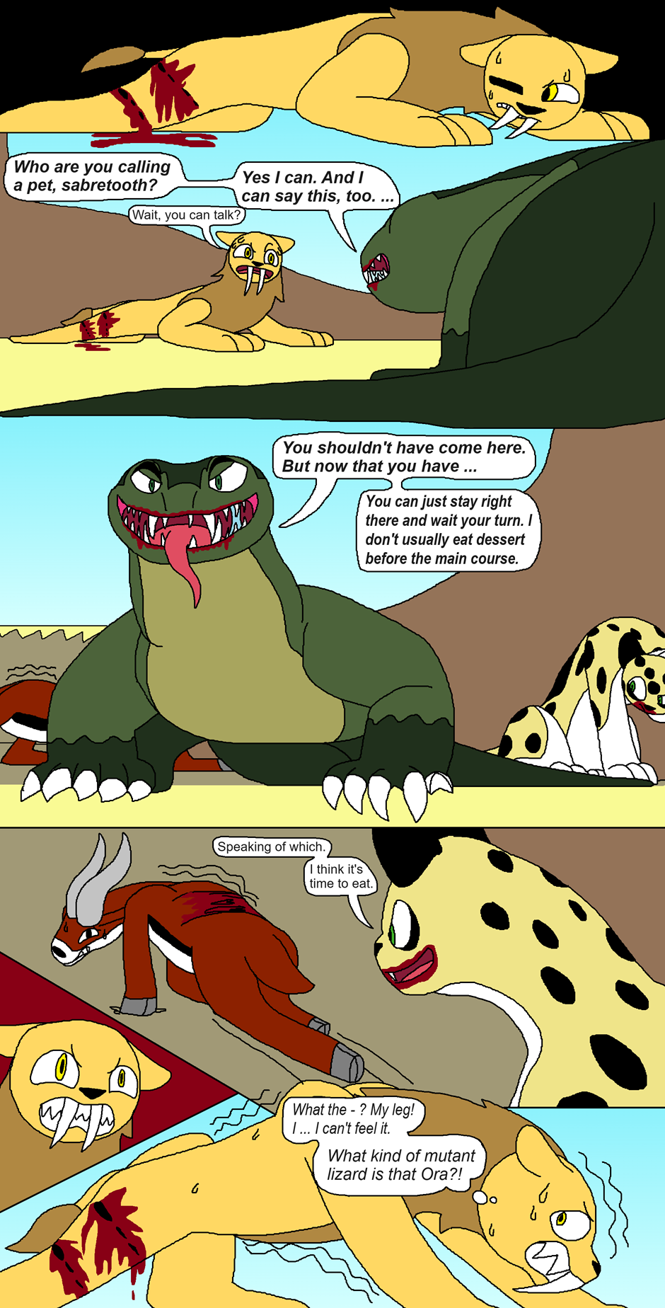 (Note 2: some episodes of this comic contain instances that, while not too graphic in detail, will show a fair amount of blood (deep cuts and tears, scratches, bites, etc.), along with more brutal acts of violence but with no blood/graphic detail to them. Any blood-filled graphic content exceeding this will be marked under mature. Read on with this in mind.)