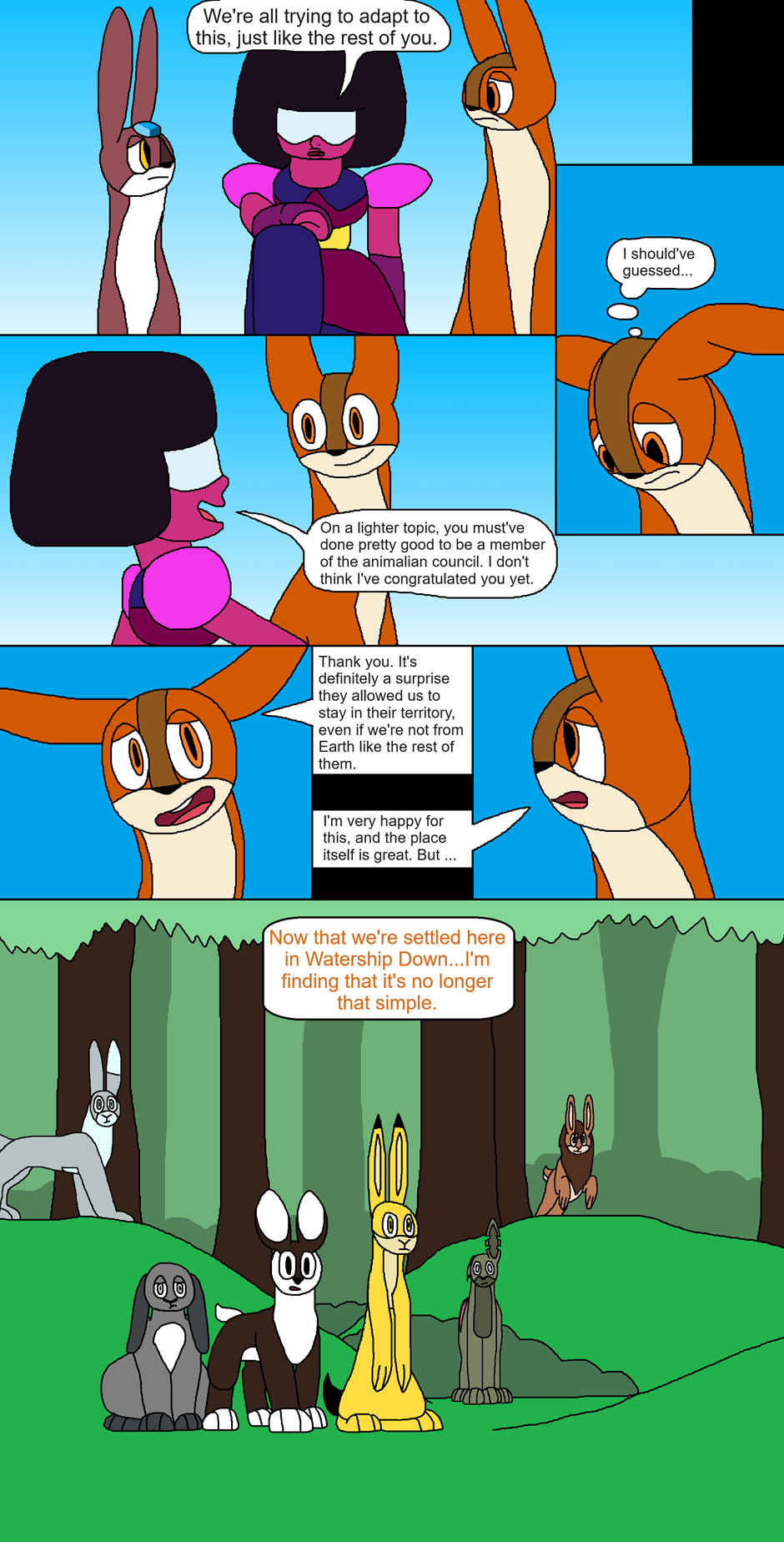 Author's note: This is a crossover comic with Steven Universe, Jungle Emperor/Kimba the White Lion, Animals of Farthing Wood, Watership Down, and many, many more (I don't even know how many this will end up with)! This is my first full comic series, and I hope you all enjoy it.