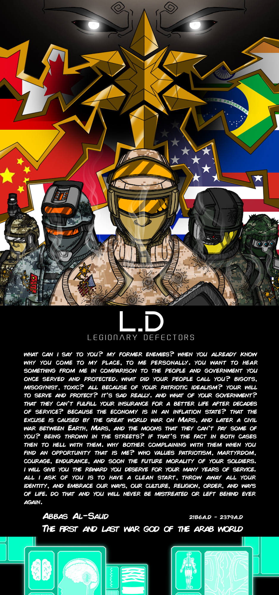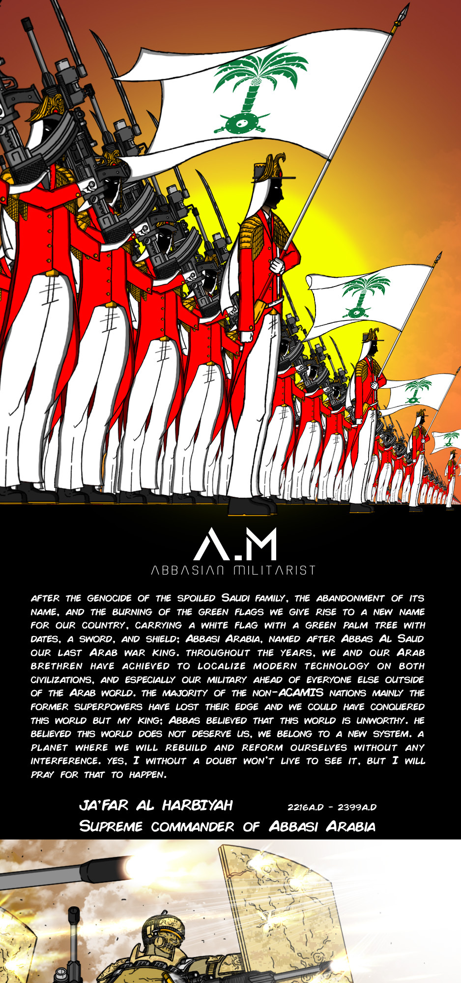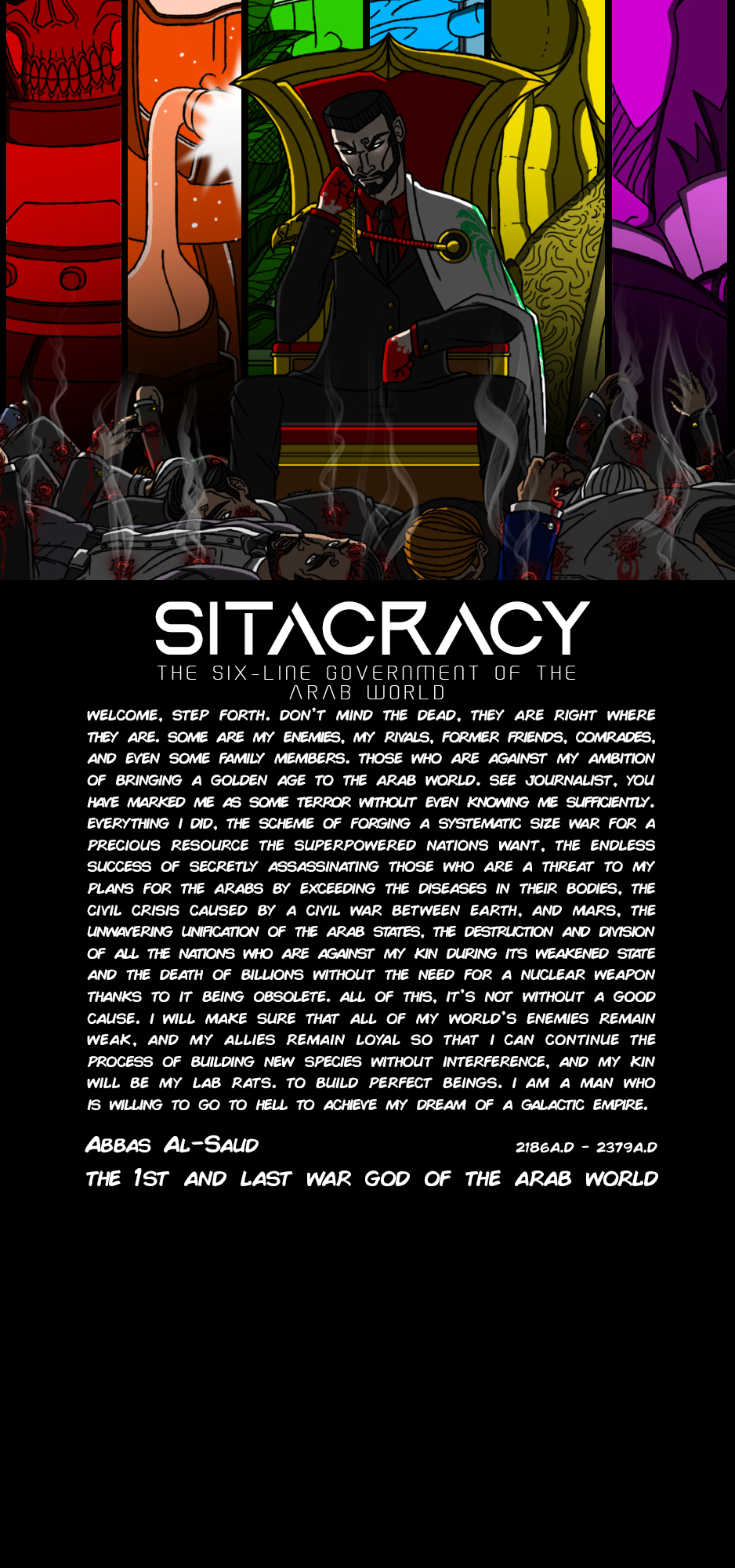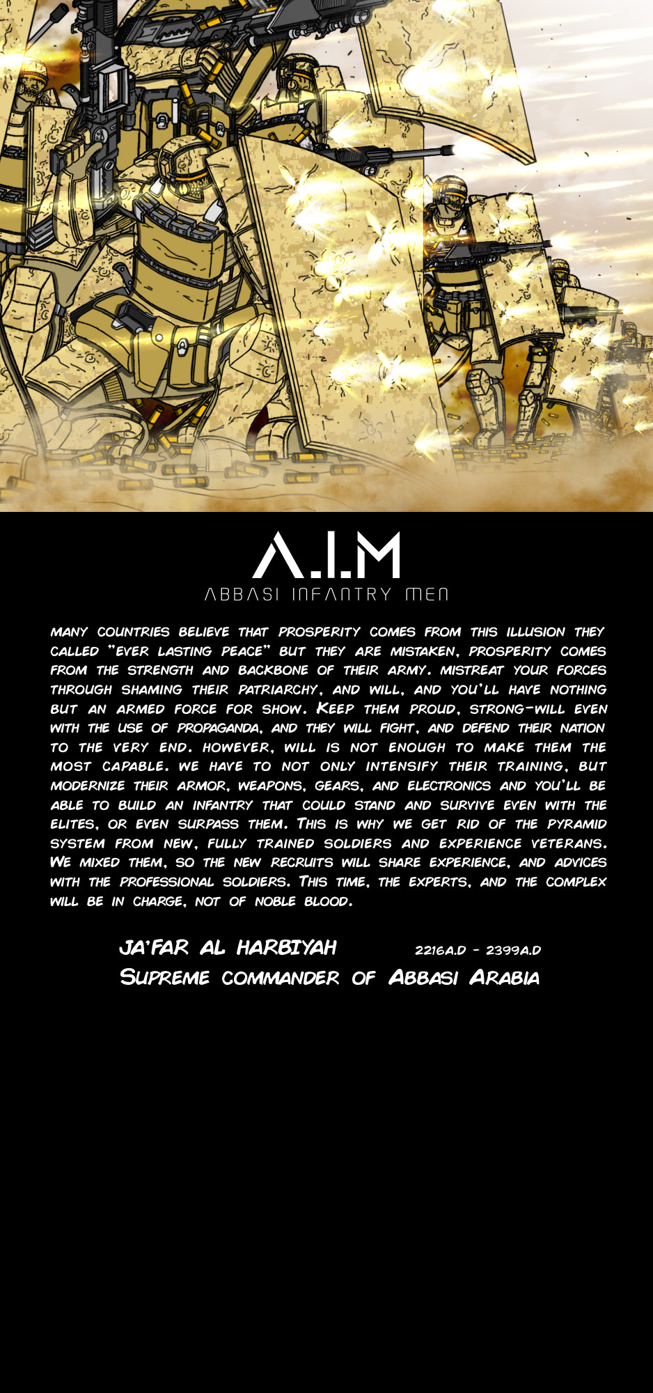 Expansion, camaraderie, martyrdom, morality, and family. These are the define traits of the Abbasians, the most powerful and adaptable humans created by a man name Abbas-A-Saud. The Arab war god.