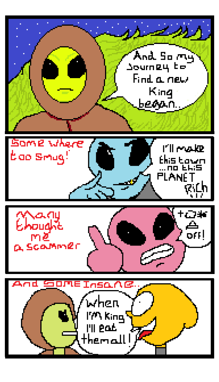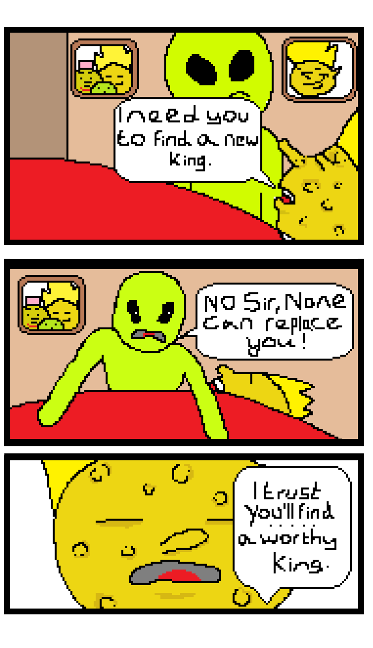 Xyglorp tell's his side of the story as he retails his search for a new king.