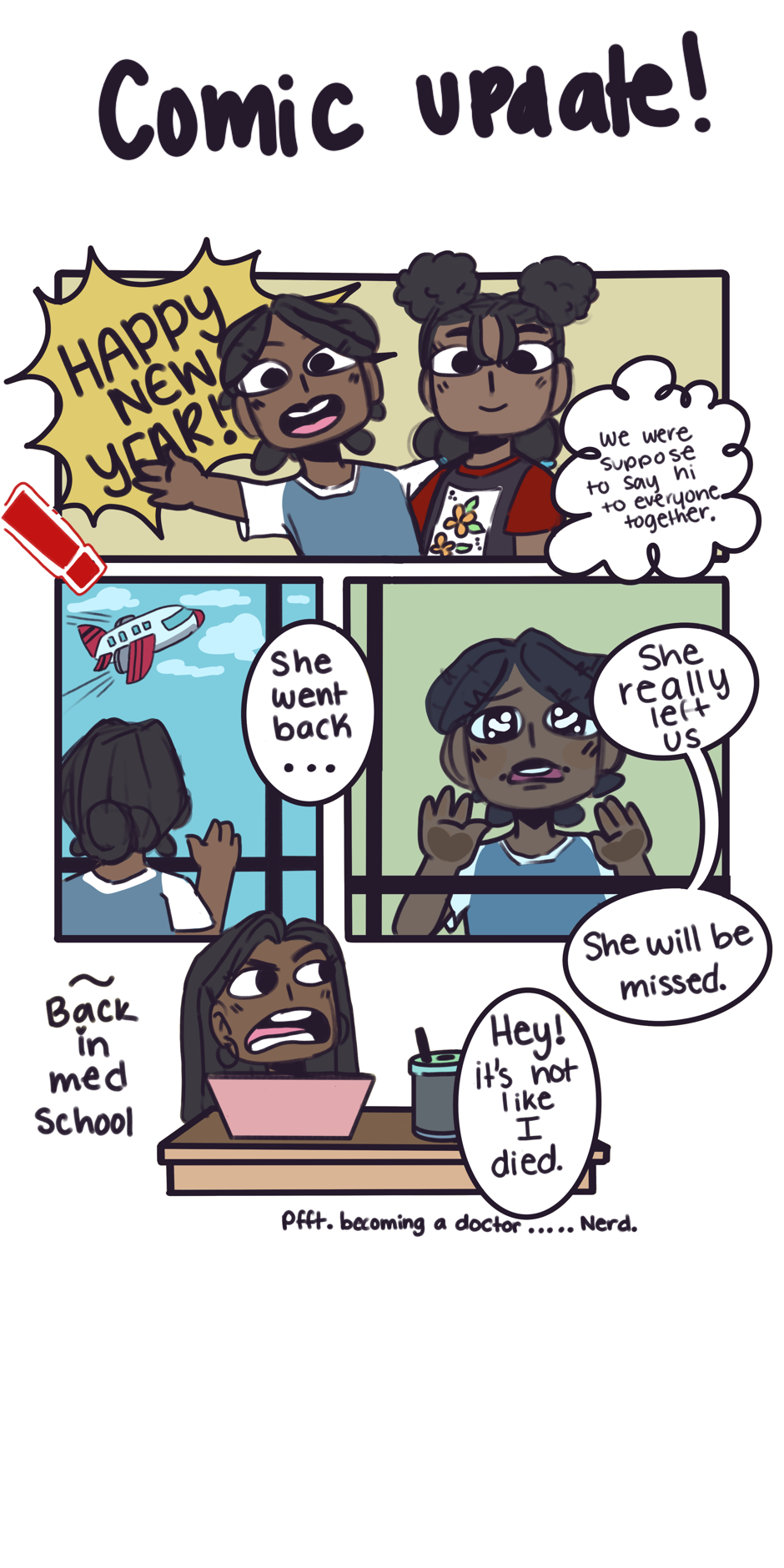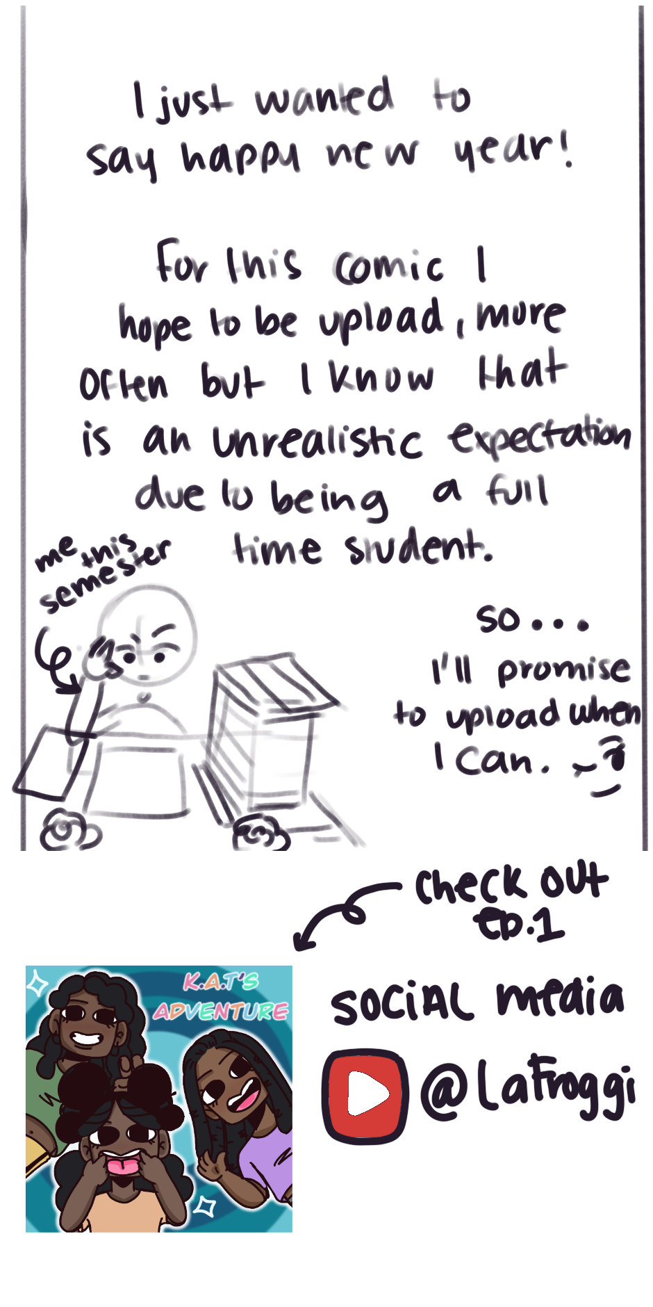 Hey everyone, I just wanted to say happy new year and wish you all well. I just wanted to give you guys an update. I’ll be uploading soon but in the meantime, I’m gonna be working on a few pages plus I’m also working on a small project and a manga contest, so stay tuned I will be able to upload more frequently but as I mentioned, I am a full-time student and It’s my last semester in college. So I hope whoever’s in school right now or in college that everything goes well for this year for all of us.