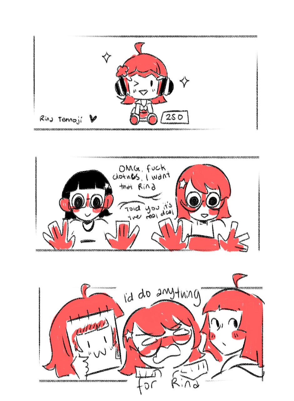 LMAO, plus the fact that my friend is getting into love live (a franchise I've been a fan of since I played sifas), and that I've been frustrating over the fact that I can hardly buy anything related to Rina Tennoji from Nijigaku ever since!