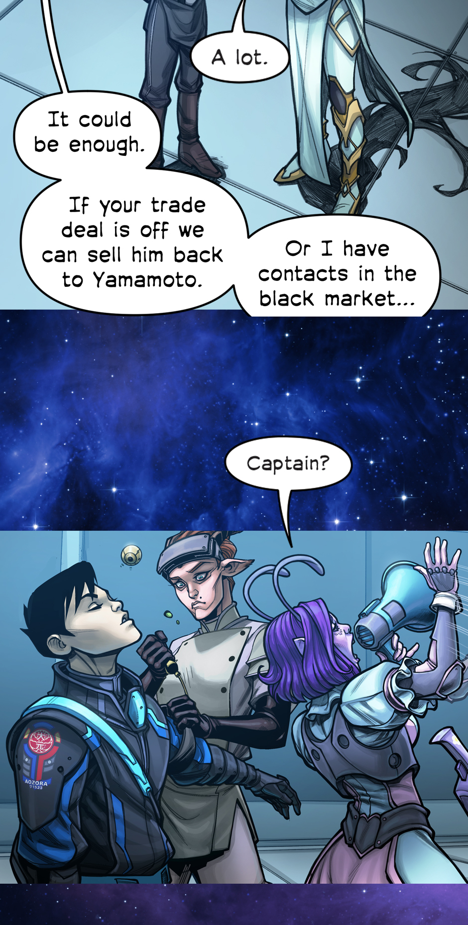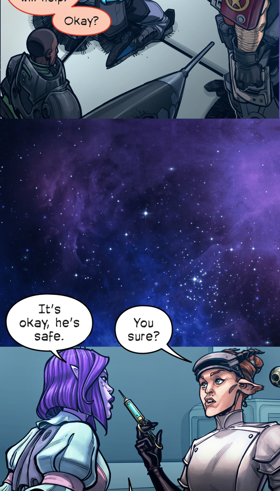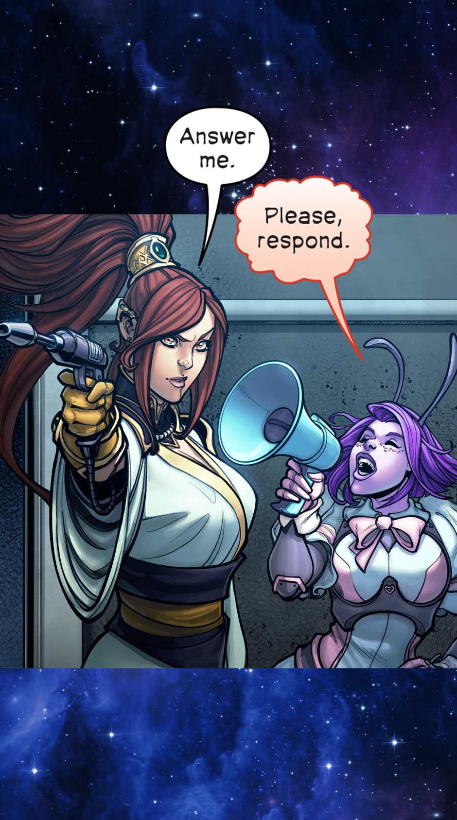 He's a very serious genetically enhanced super-soldier. She's a less serious sugar-addicted mercenary. Together they're the best work-for-hire duo in the galaxy. Cover image by Starbite!