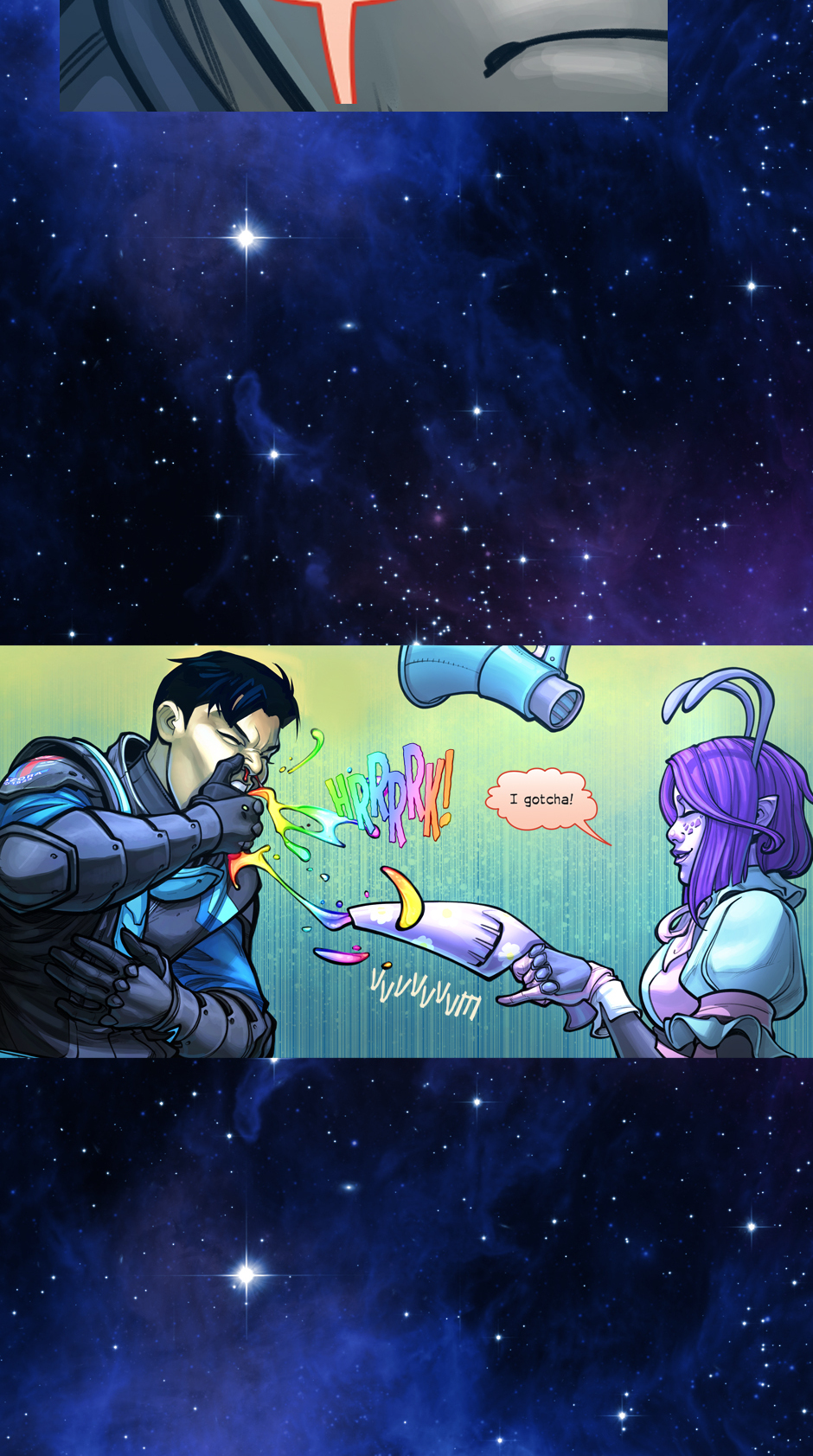 Spoiler alert. It's REAL painful. Also I've seen other comics do the rainbow vomit thing and I always thought it was funny so I thought I'd give it a try, haha!