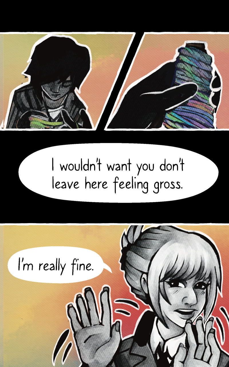 Explicit depictions of self harm/suicide will not appear in this comic, but it will be referenced as a warning for people sensitive to that content