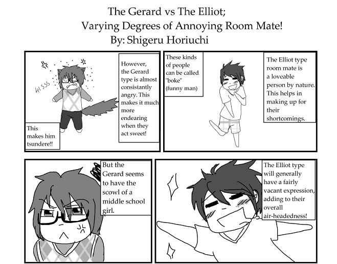 This displays the differences between my roommate, Elliot, and Gerard.