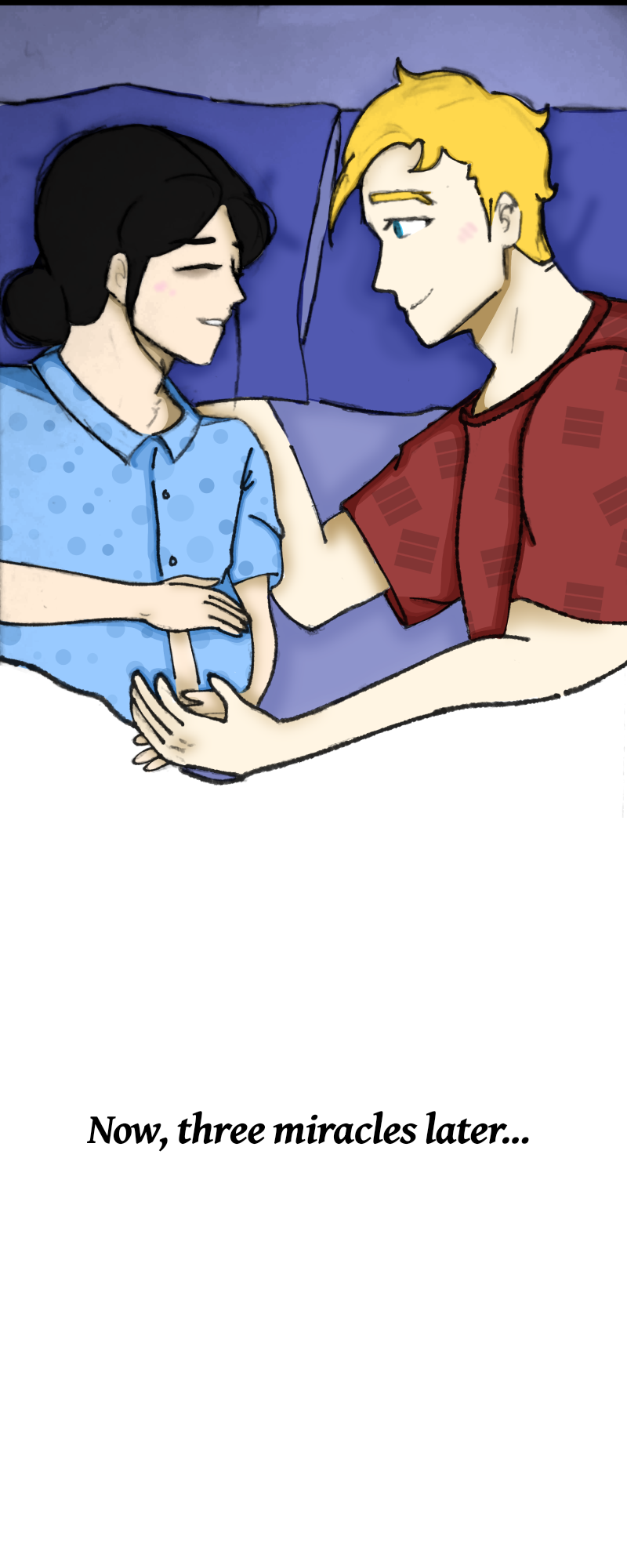 The continuation of Serendipity Embrace: Love Beyond Fates—now in a short comic! Follow Kreo, a hero destined to fight the villain, Azazel, only to fall head over heels for him instead. Together, they embrace change and the unexpected arrival of three little miracles. Now, with their mischievous triplets, they navigate the chaos, joy, and twists of family life in this heartwarming and comedic journey!