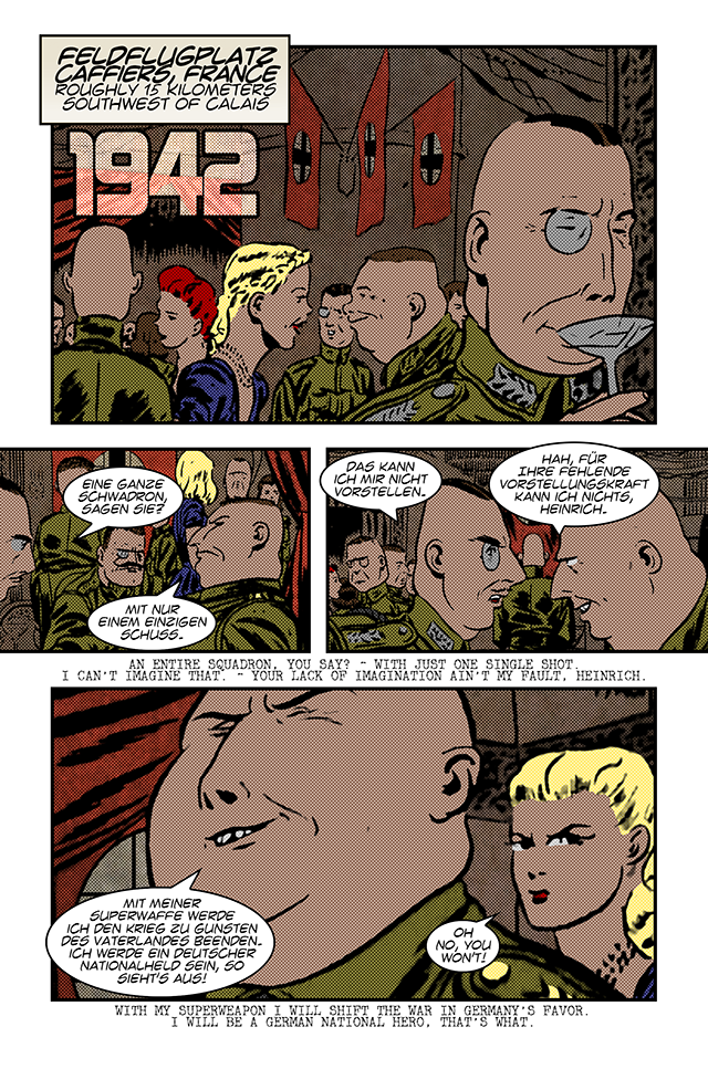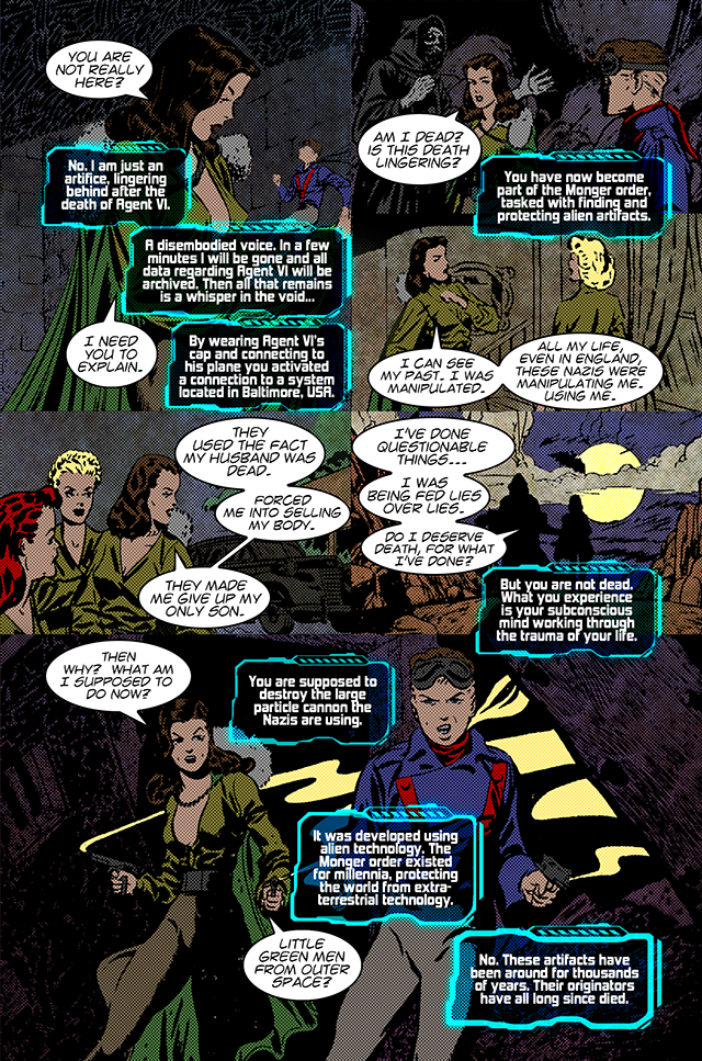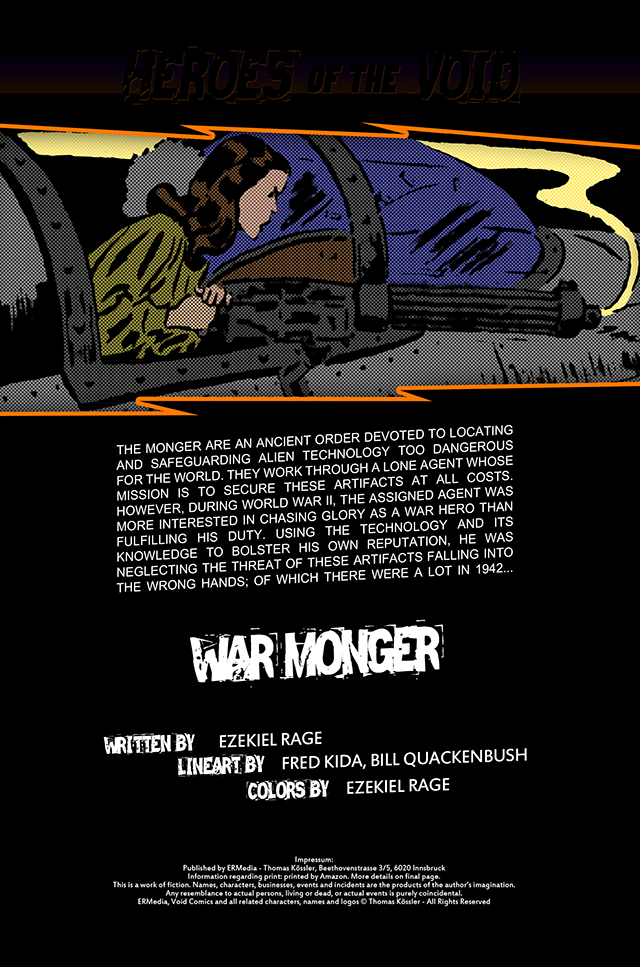 The Monger is an ancient order devoted to locating and safeguarding alien technology that is too dangerous for the world. They operate through a lone agent whose mission is to secure these artifacts at all costs. However, during World War II, the assigned agent became more interested in chasing glory as a war hero than in fulfilling his duty. Using the technology and its knowledge to bolster his own reputation, he neglected the very real threat of these artifacts falling into the wrong hands - of which there were many in 1942.