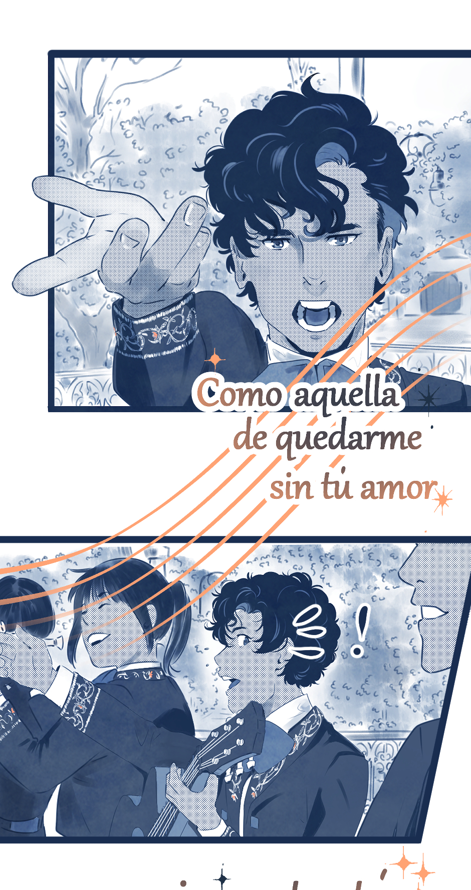 I am throwing hints that I'm launching a kickstarter for the print run of my mariachi bl comic *wink wink* https://www.kickstarter.com/projects/pameladraws/como-termina-la-cancion-a-queer-fantasy-one-shot-comic