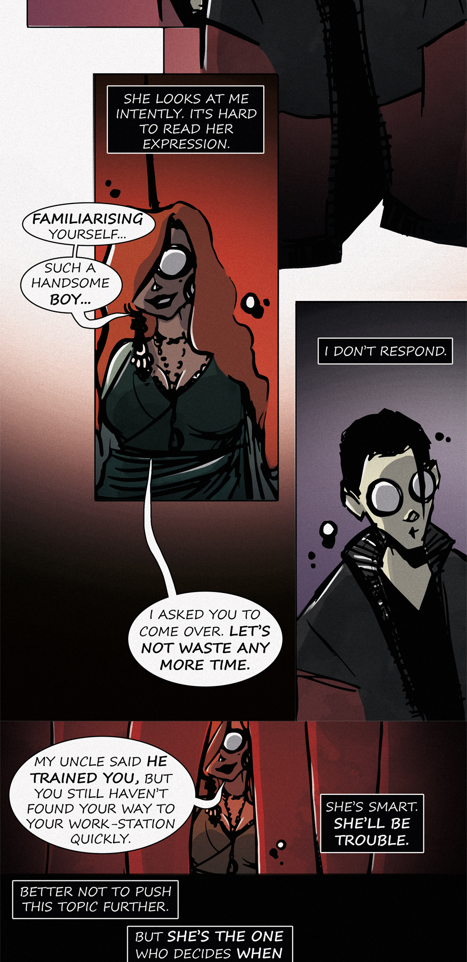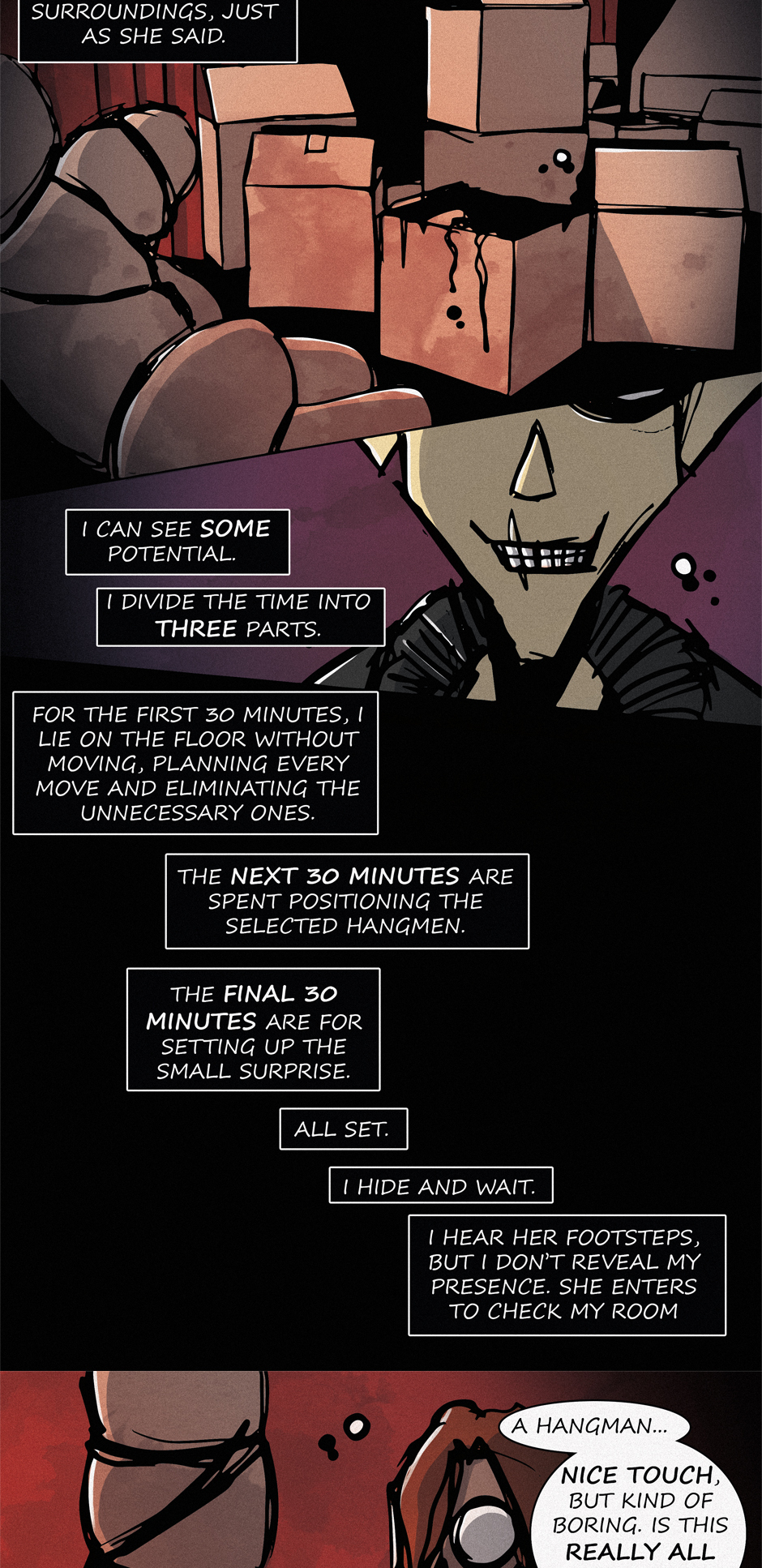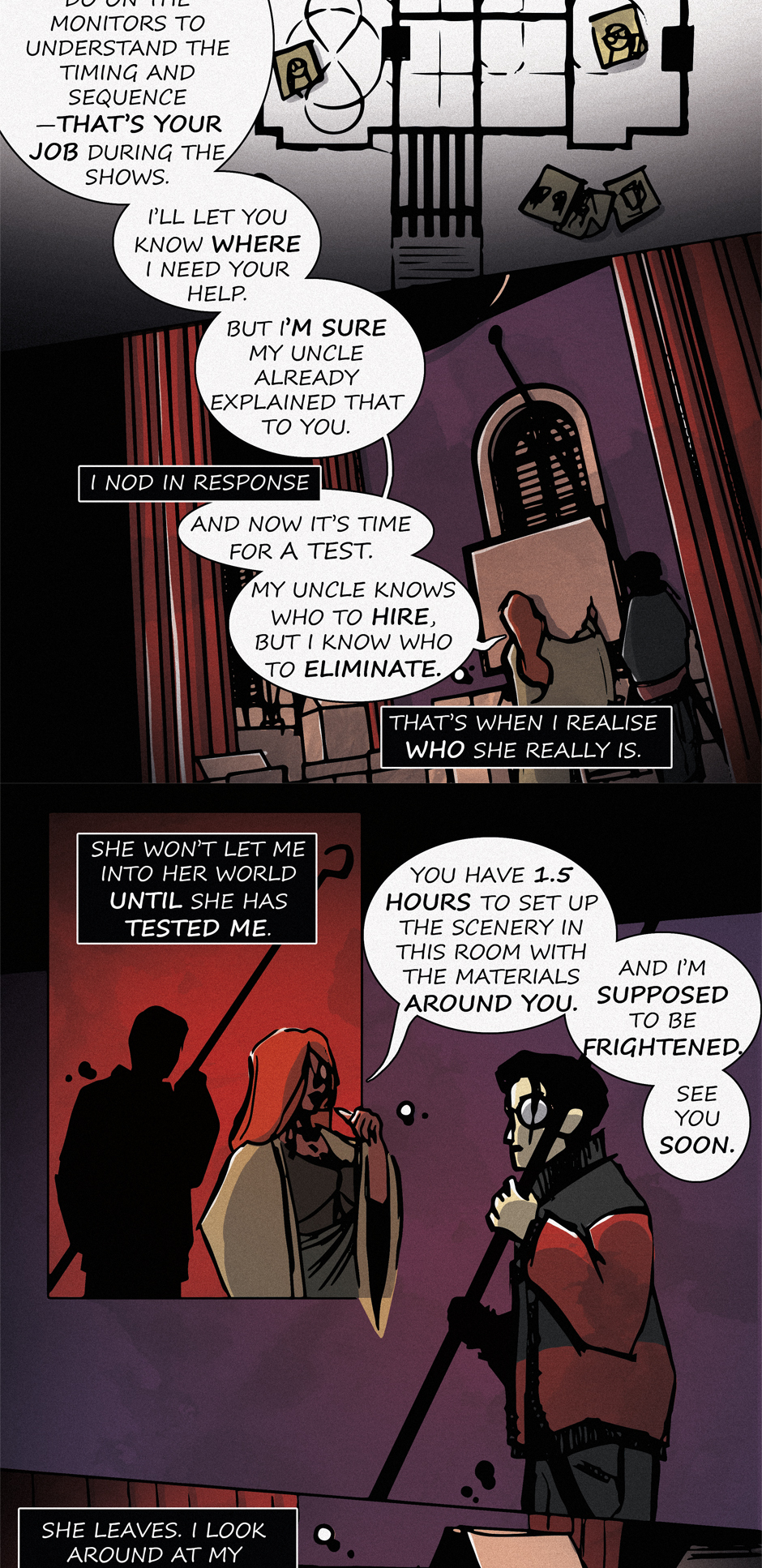 In episode 4 of "Holloween Haunted House," titled "Do You Still Want to Test Me?", Joe meets his manager, who seems reserved. She decides to test his skills to see if he's up for the challenge. The results of the test scare her.