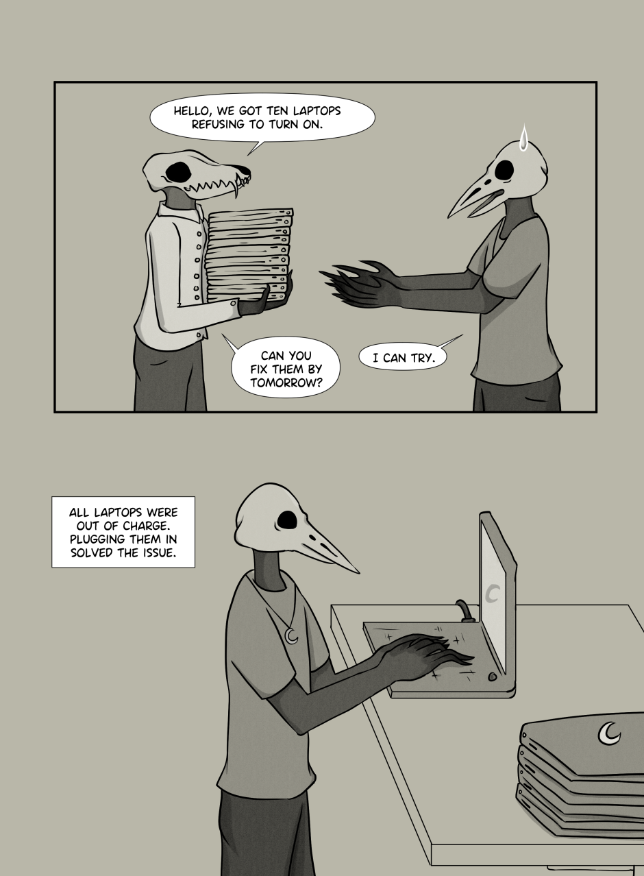 These 24 pages comprise the first part and the first edition of the Tech Support series. The second part starts publishing in the autumn of 2025!