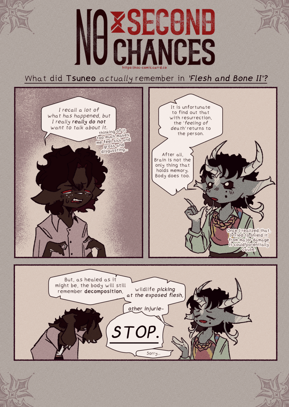 Hi there, no chapter this month due to exams and uni work, but next one's coming next month as per usual schedule! In the meantime, there's quite a few extras I want to share with you and improvements like the new rewritten premise and a new cover that better fits the mood of the story after this cutsey leisure moment passes :)