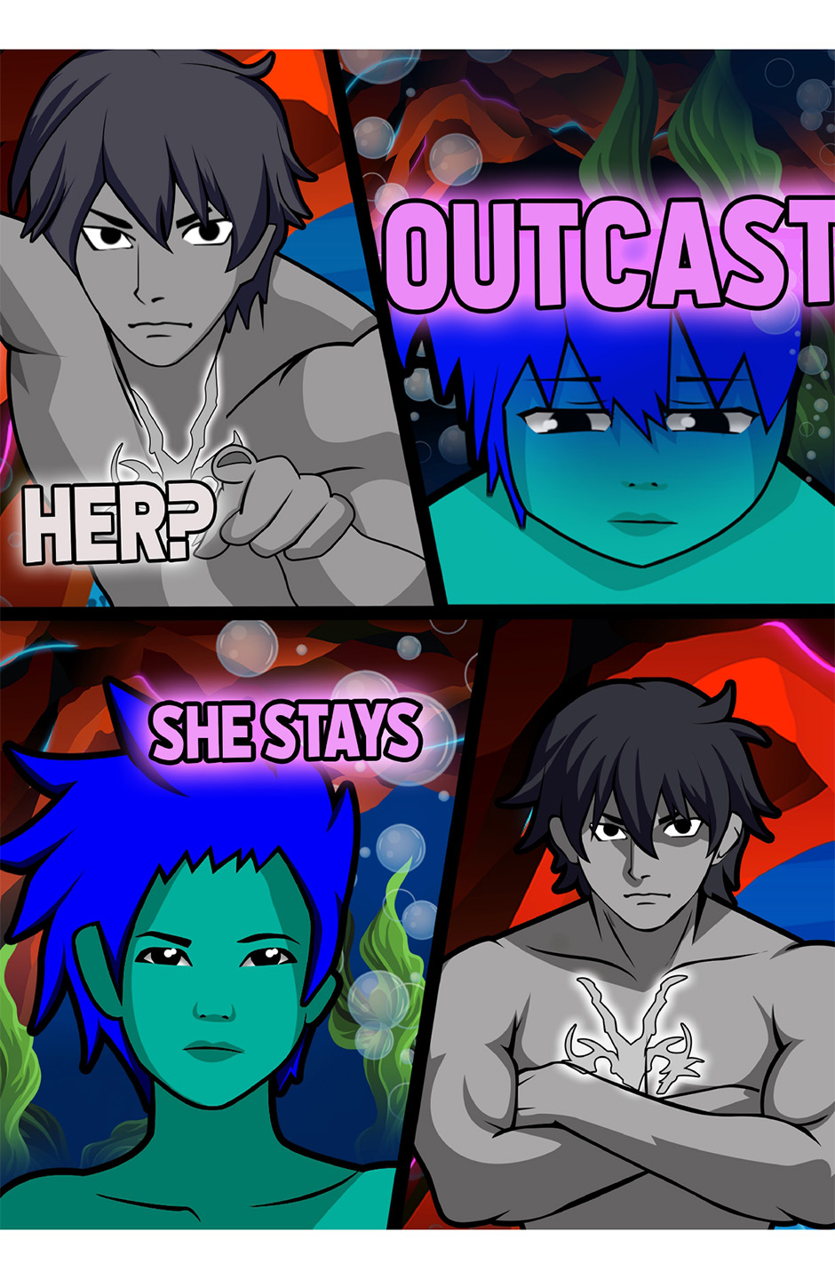 In the depths of the ocean, Oyster discovers an outcast near her shoal. In helping this stranger named Cyan, she slowly falls in love. To battle the currents of a new relationship, Oyster will have to break several rules in an attempt to live happily ever after.