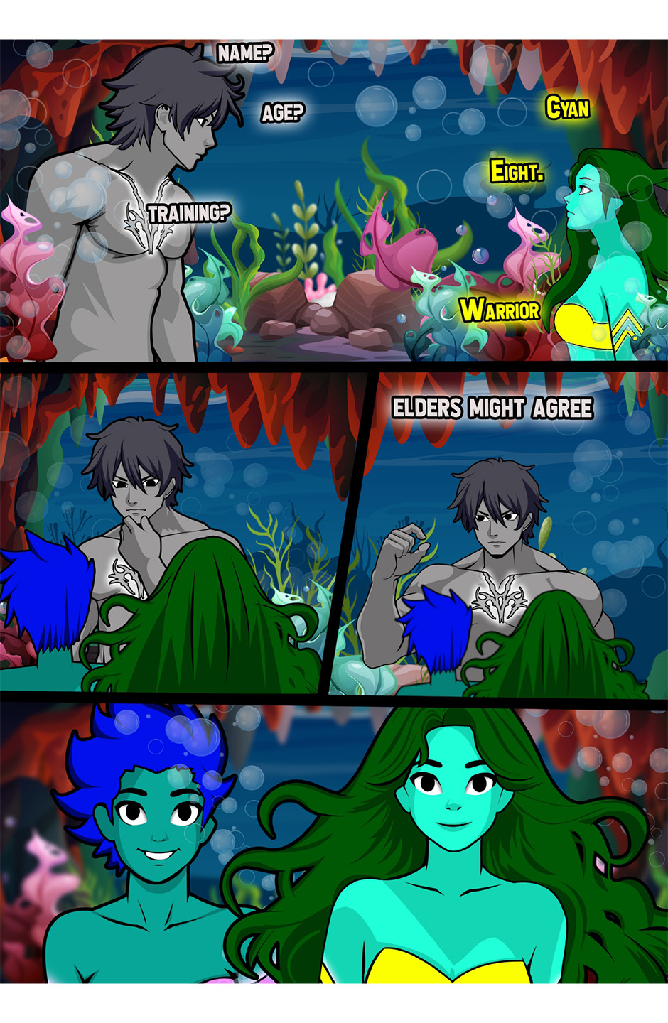 In the depths of the ocean, Oyster discovers an outcast near her shoal. In helping this stranger named Cyan, she slowly falls in love. To battle the currents of a new relationship, Oyster will have to break several rules in an attempt to live happily ever after.