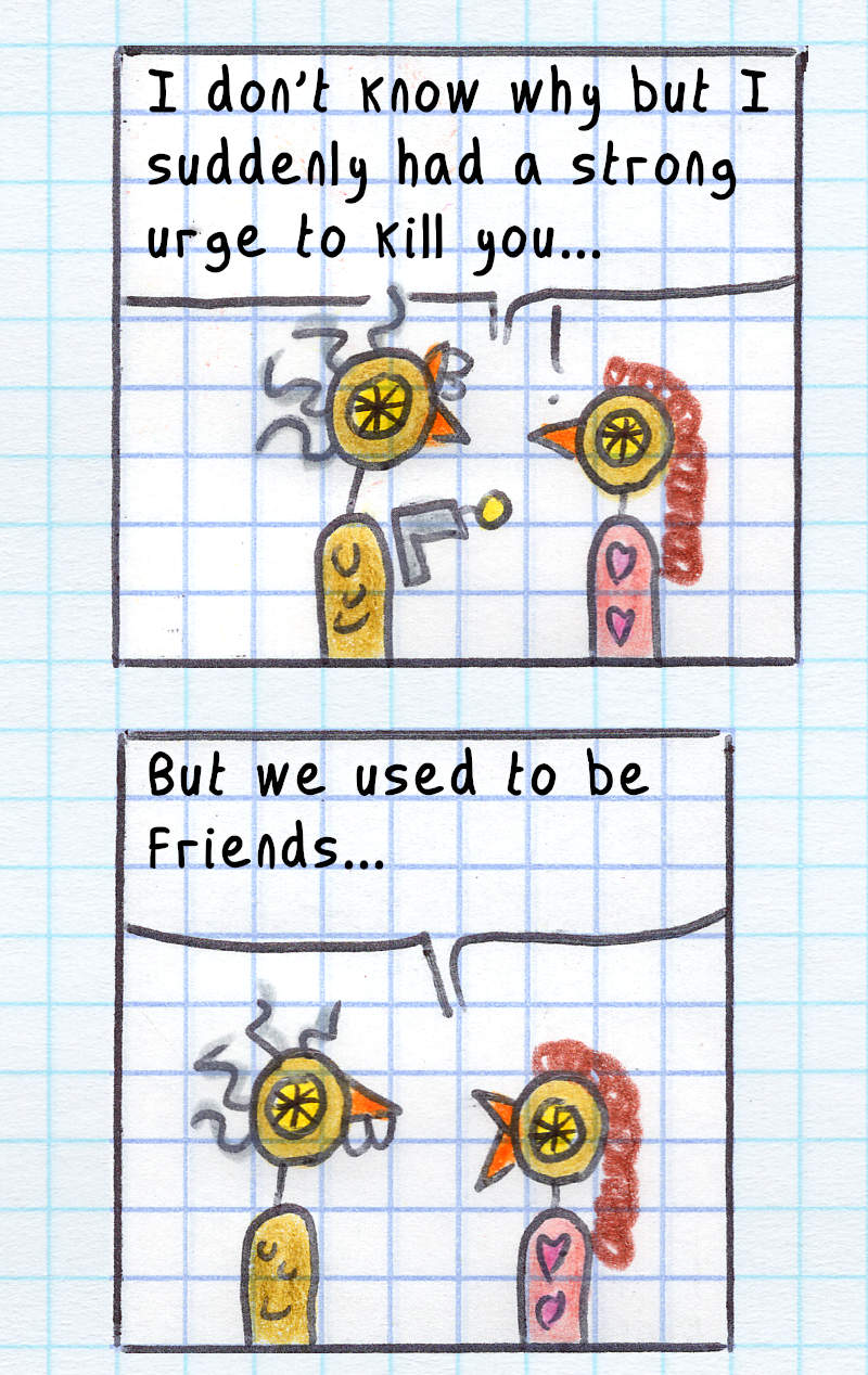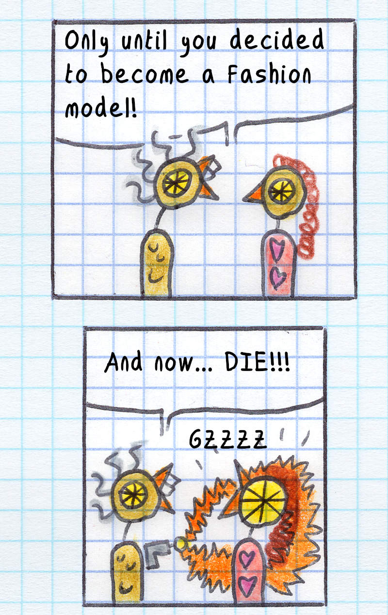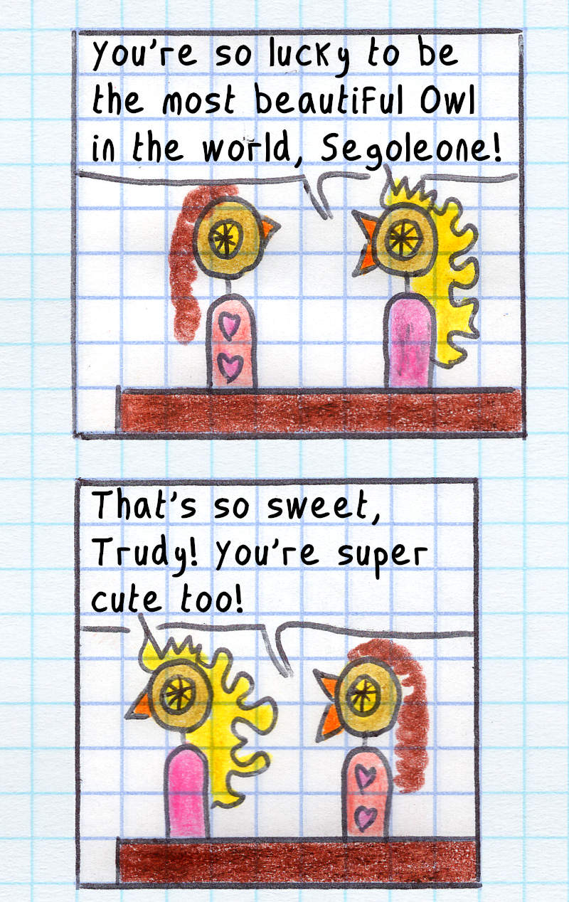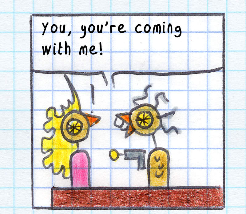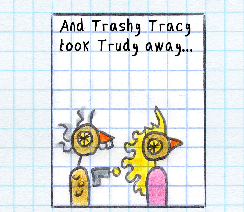 I had no idea what would happen after I drew the first panel on August 16th, 2000. I had no outline, just a few character sketches. Discovering the story as I went, without going back or editing, was a lot of fun! But as the story progressed, I started planning ahead—first a few panels, and eventually entire story arcs of around 100 pages.