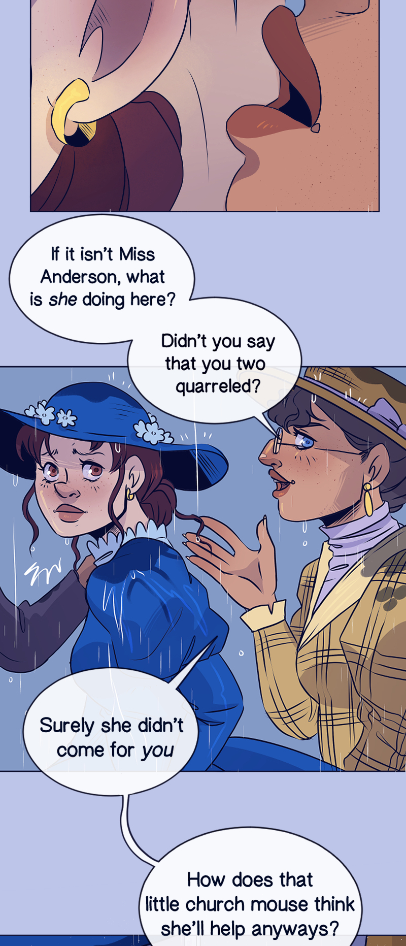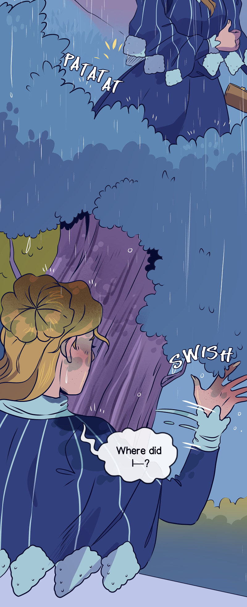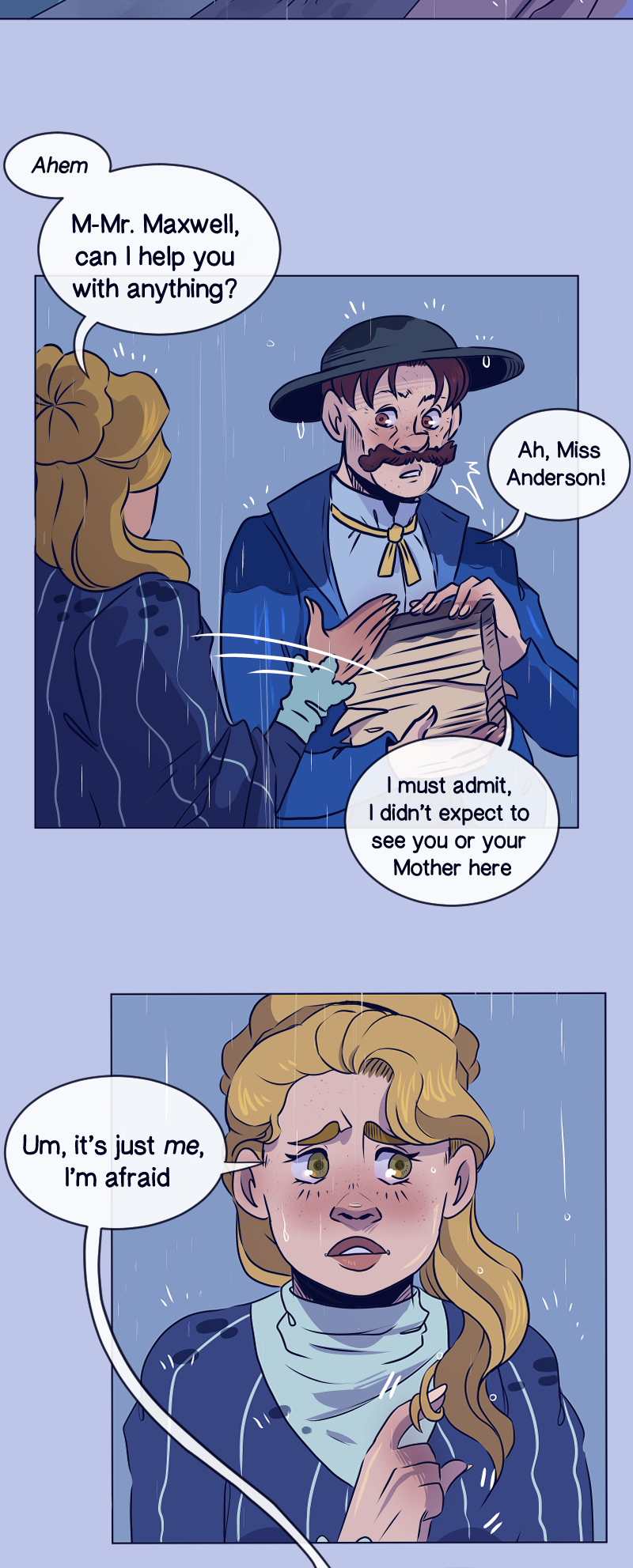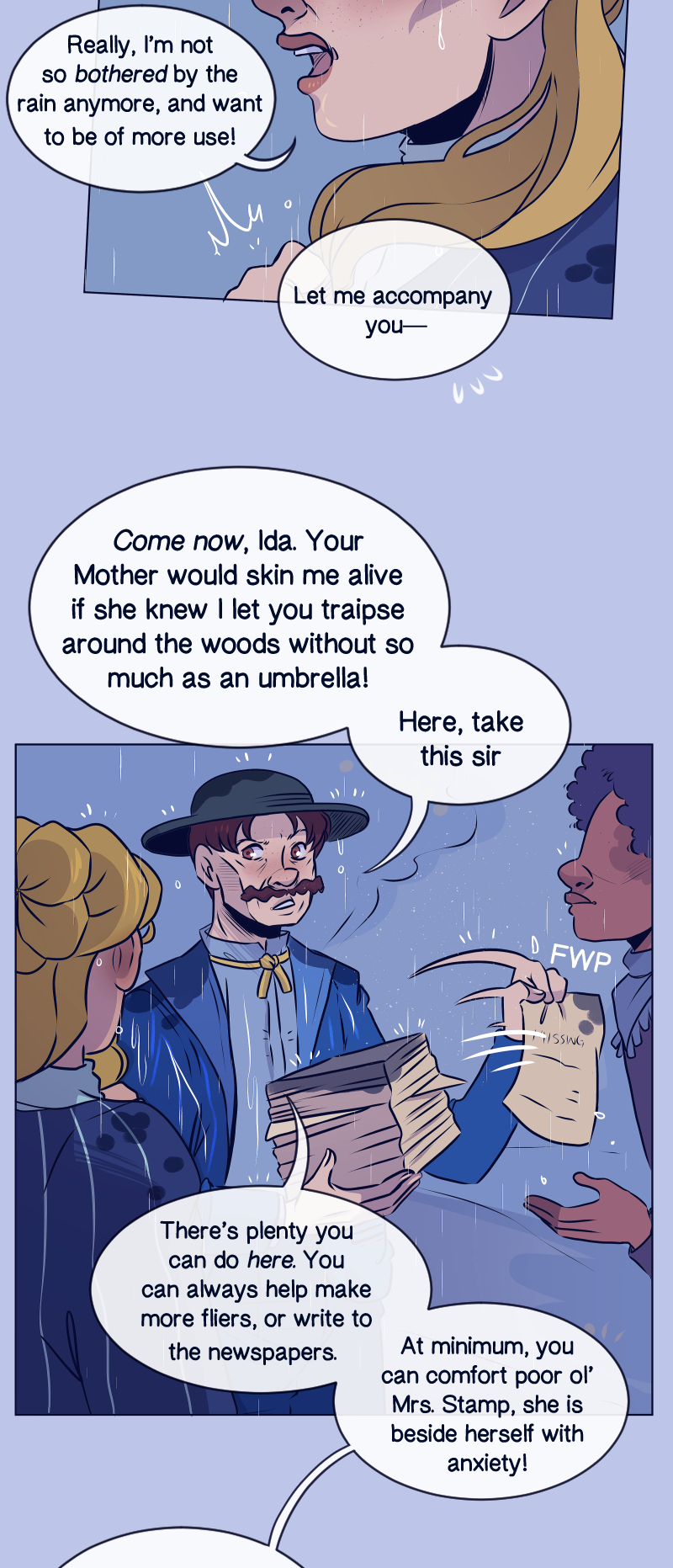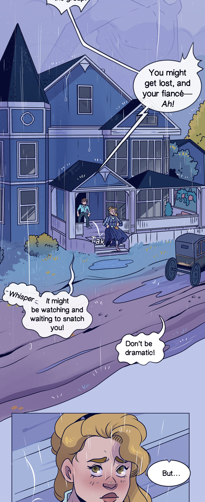 After the death of her Father, Whilhelmina "Mina" Fisher is invited to live with her Aunt in a mysterious town where it rains all the time. Her Aunt asks Mina to keep a close eye on her younger cousin, Ida, and make sure she doesn't fall in love. That's easier said than done, especially when Mina is distracted by something paranormal lurking in the rain…