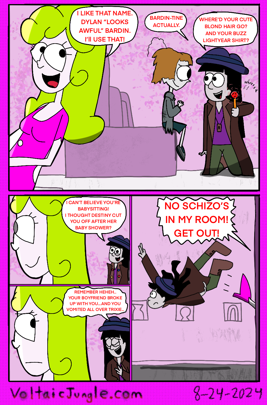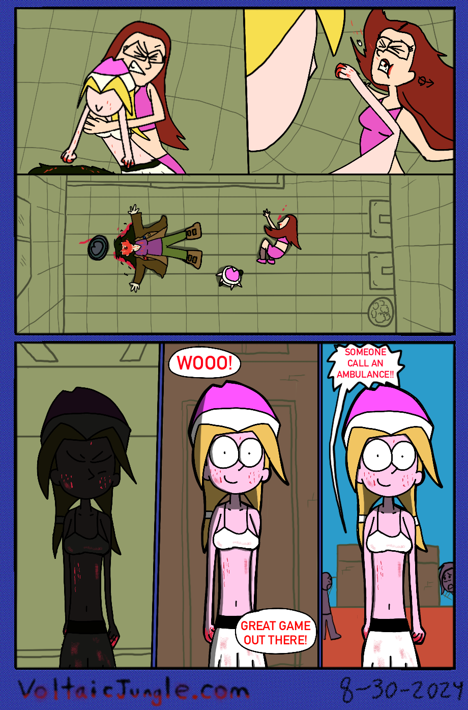 The hit early 2000’s cartoon continues churning out new adventures! Rebooted back to their iconic teenage selves, our six protagonists must cope with their renewed, seemingly endless existences. Watch these poor souls continue to entertain forever and ever and ever and ever and ever... Also available at www.voltaicjungle.com/free_falling