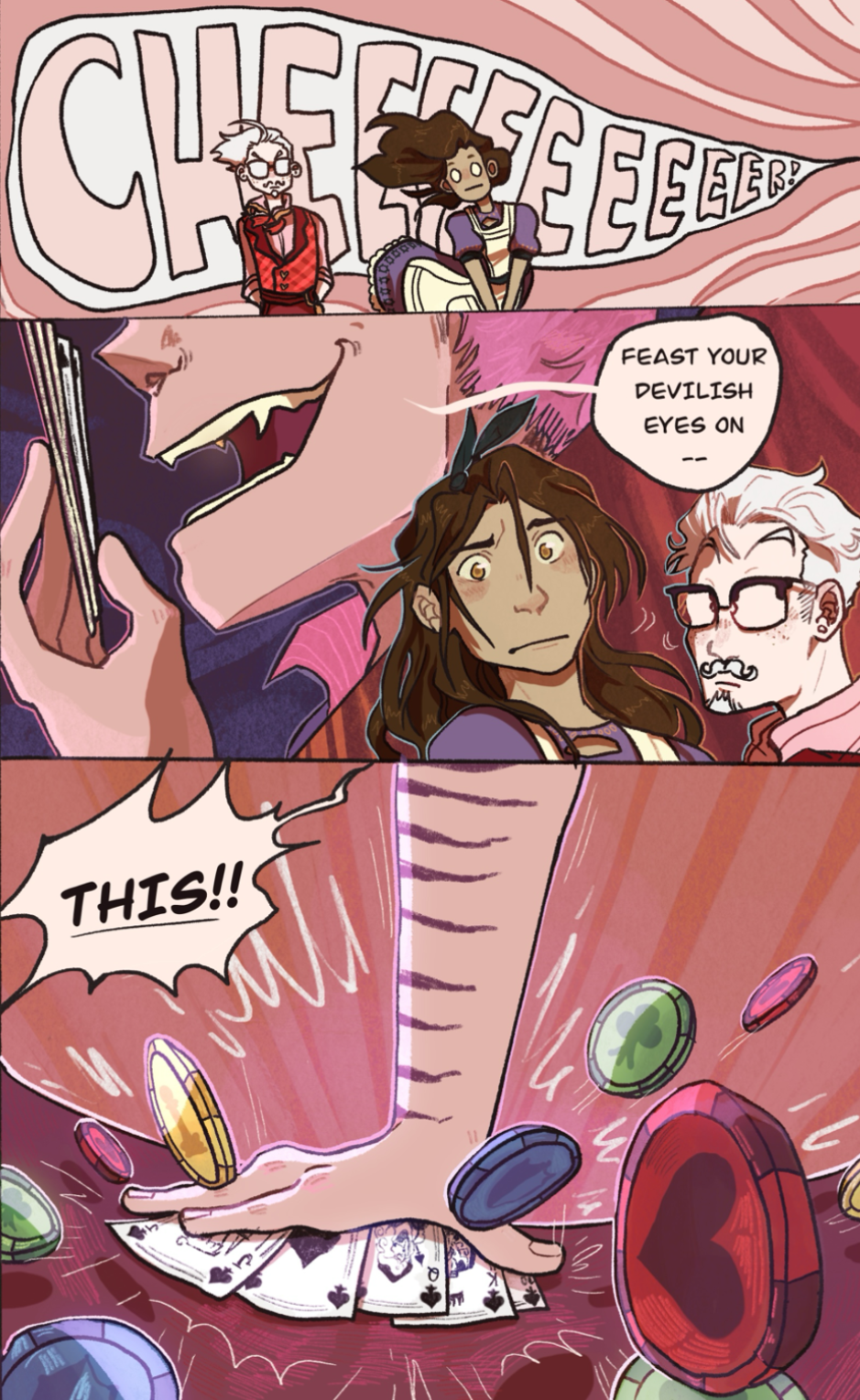 A young woman suffering from amnesia awakens in an alternate reality, one that prides itself on its affinity for games. Discovering she has gambled her memories away the night before, she hunts down the world’s inhabitants to regain them, while also trying to stay alive amidst the volatile politics between districts. [Dialogue by AMM] [Illustration by Lizpatastic]