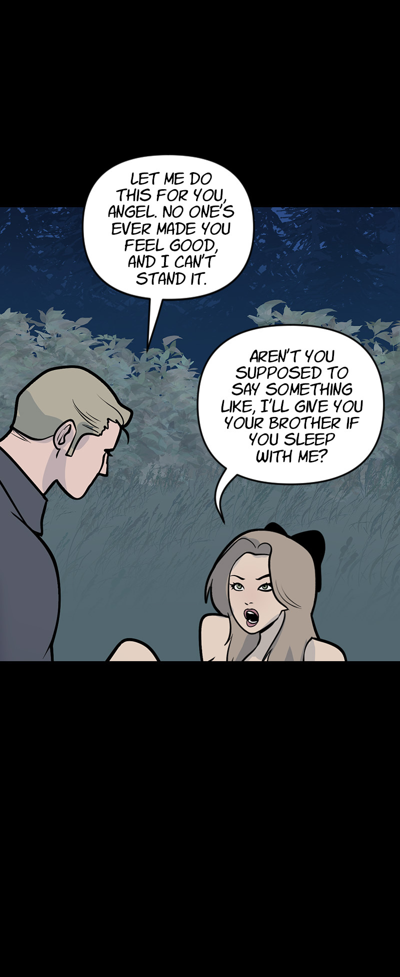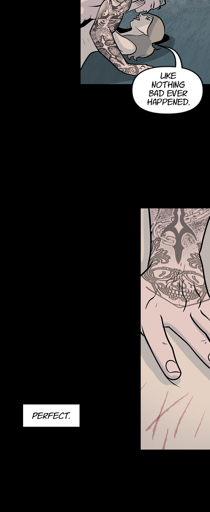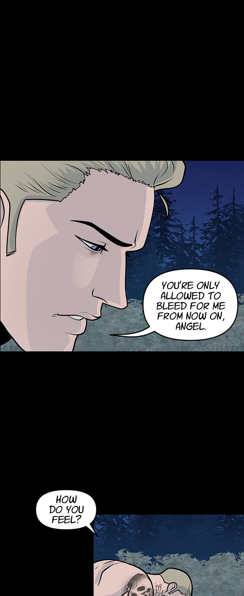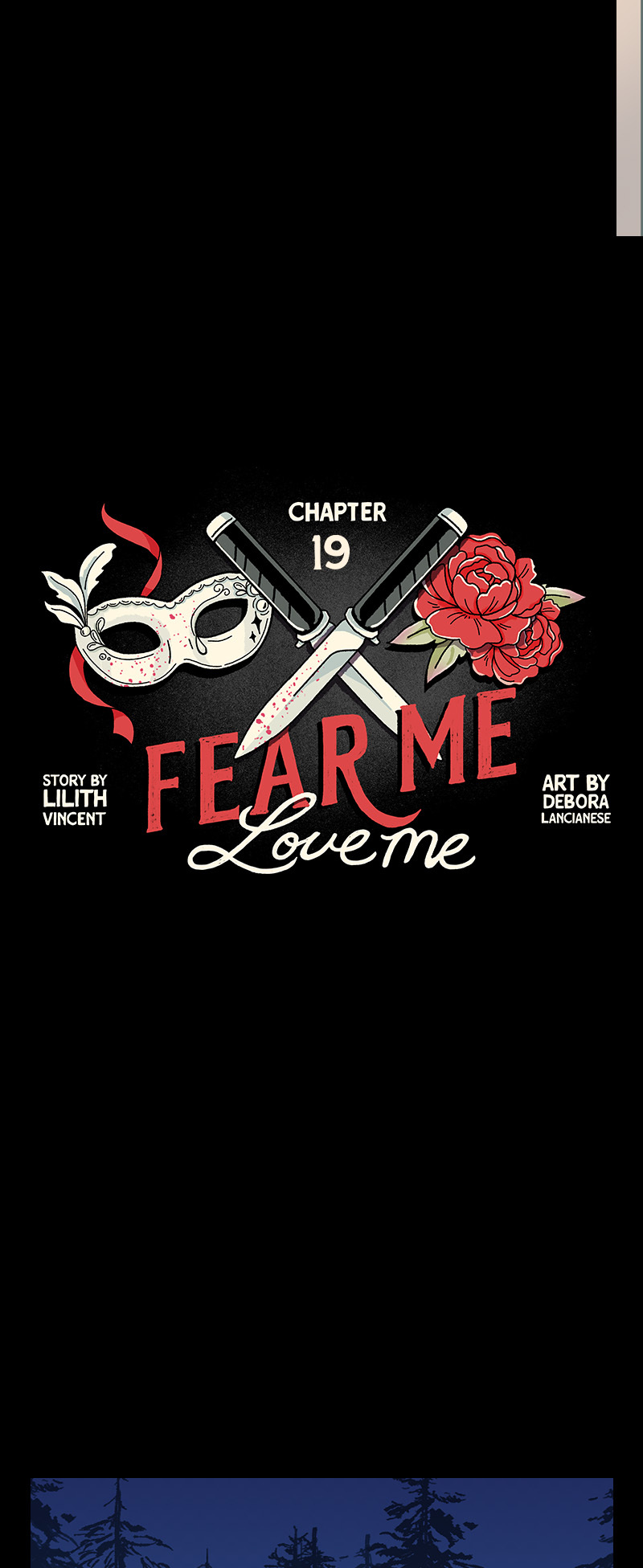 18+ only. NOT SUITABLE FOR SENSITIVE READERS. This is a DARK comic that romanticizes a morally gray and violent male lead. Themes include self-harm, violence, age gap, and sexual assault (not by the male lead.)