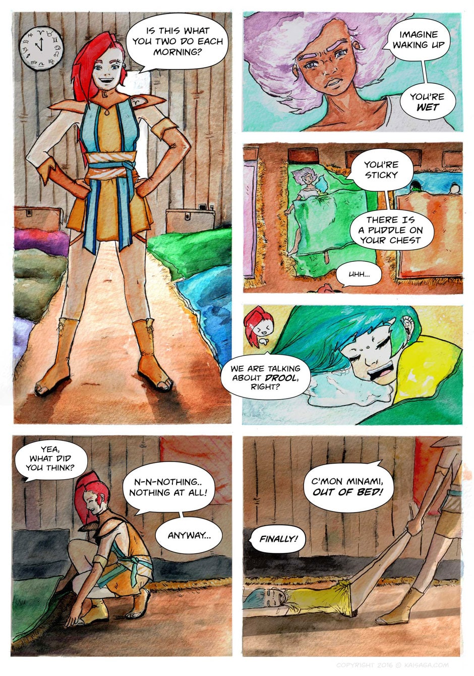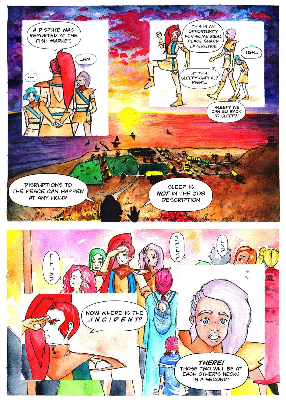 Kai Saga is a fantasy watercolor webcomic revolving around the sudden war spread across the Kai Islands. 3 Peace Guards, used to uneventful policing, are thrust into a world they no longer recognize.