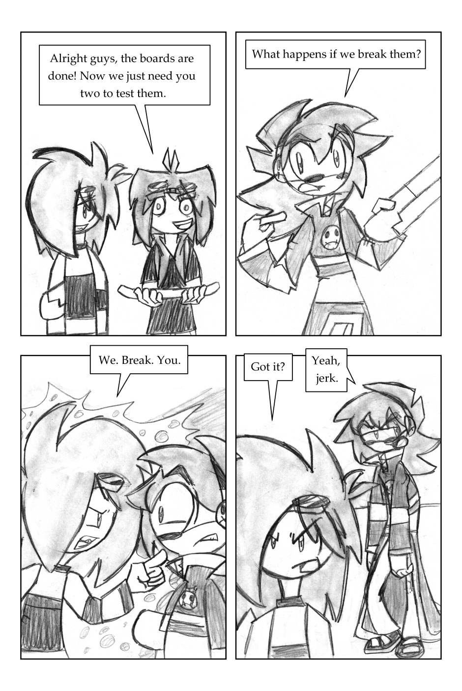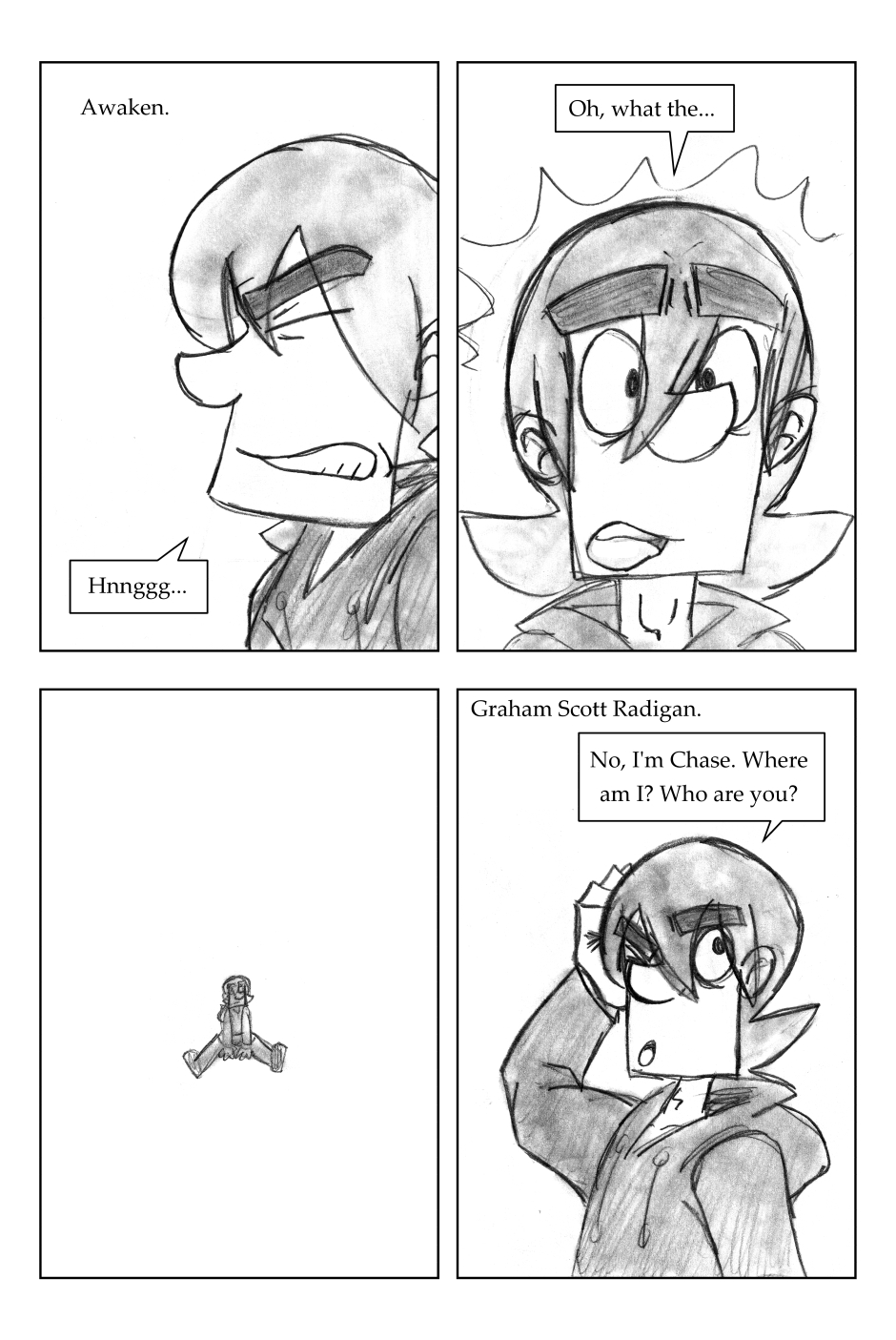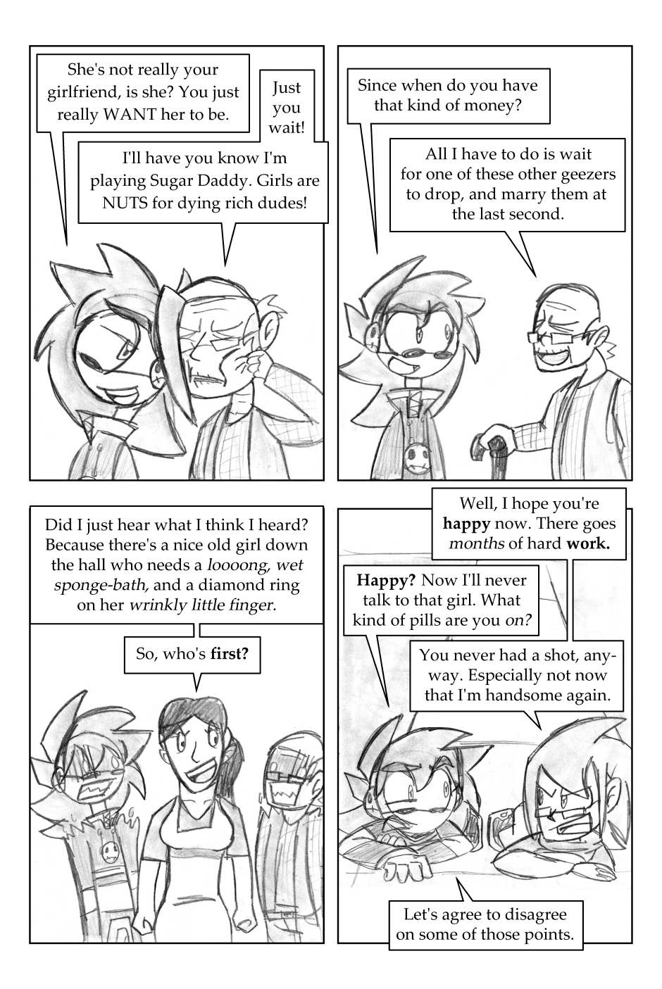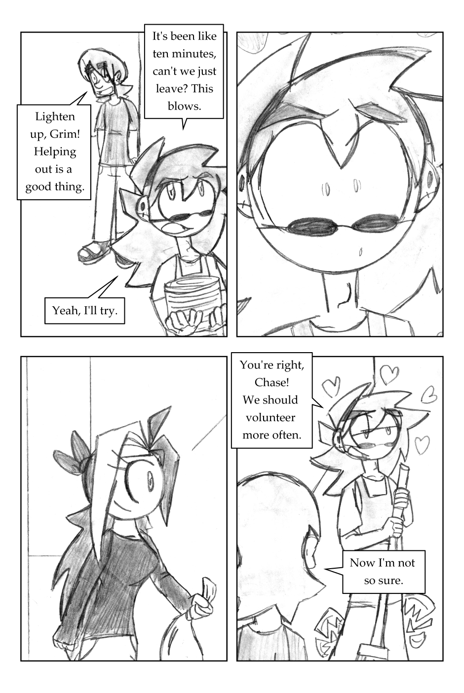 I was 12 years old when I drew this, where it all began! For this one, I'd started going down one path plotwise (the secret agent wanting the scythe) and then changed my mind. I figured it'd be funnier to leave it in, and make a joke out of it.