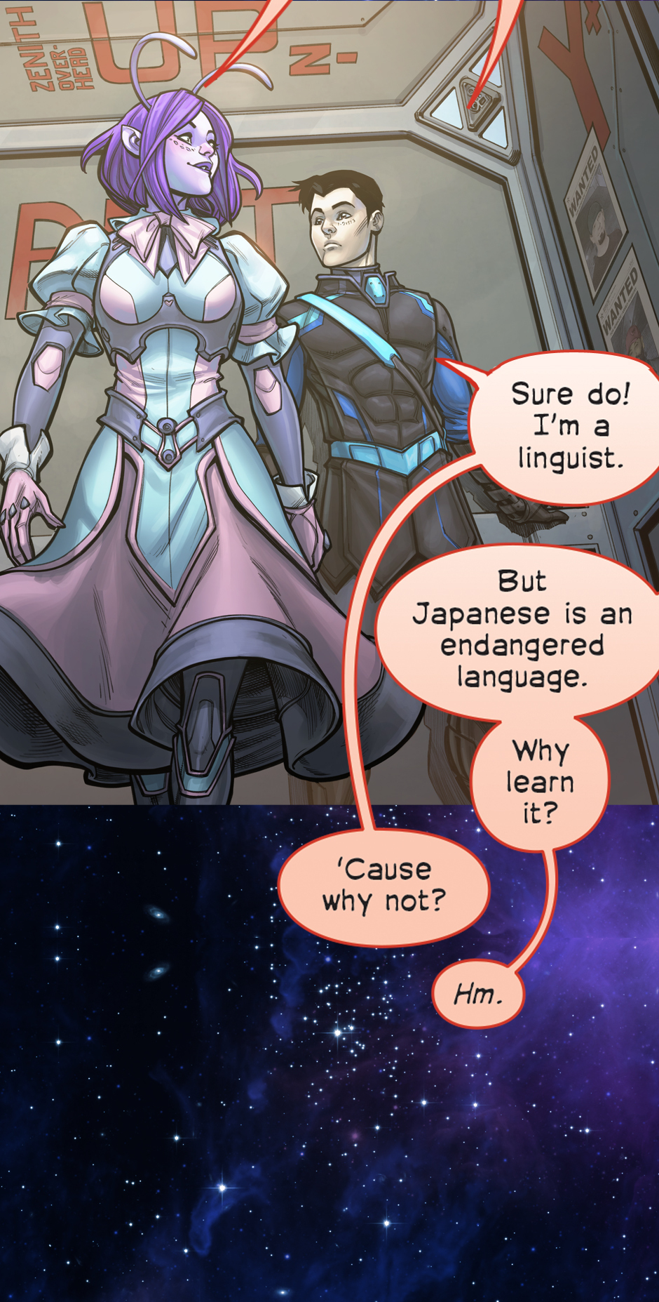 He's a very serious genetically enhanced super-soldier. She's a less serious sugar-addicted mercenary. Together they're the best work-for-hire duo in the galaxy. Cover image by Starbite!