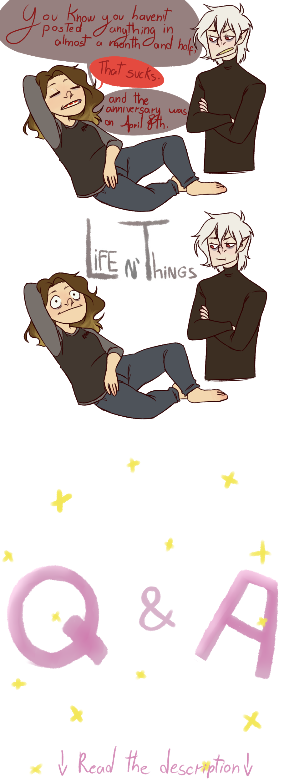 I'm a horrible person regarding dates, so I didn't drew anything when it happened. About the Q&A, you know the drill, ask, I pick some to draw the answers and everyone is happy!