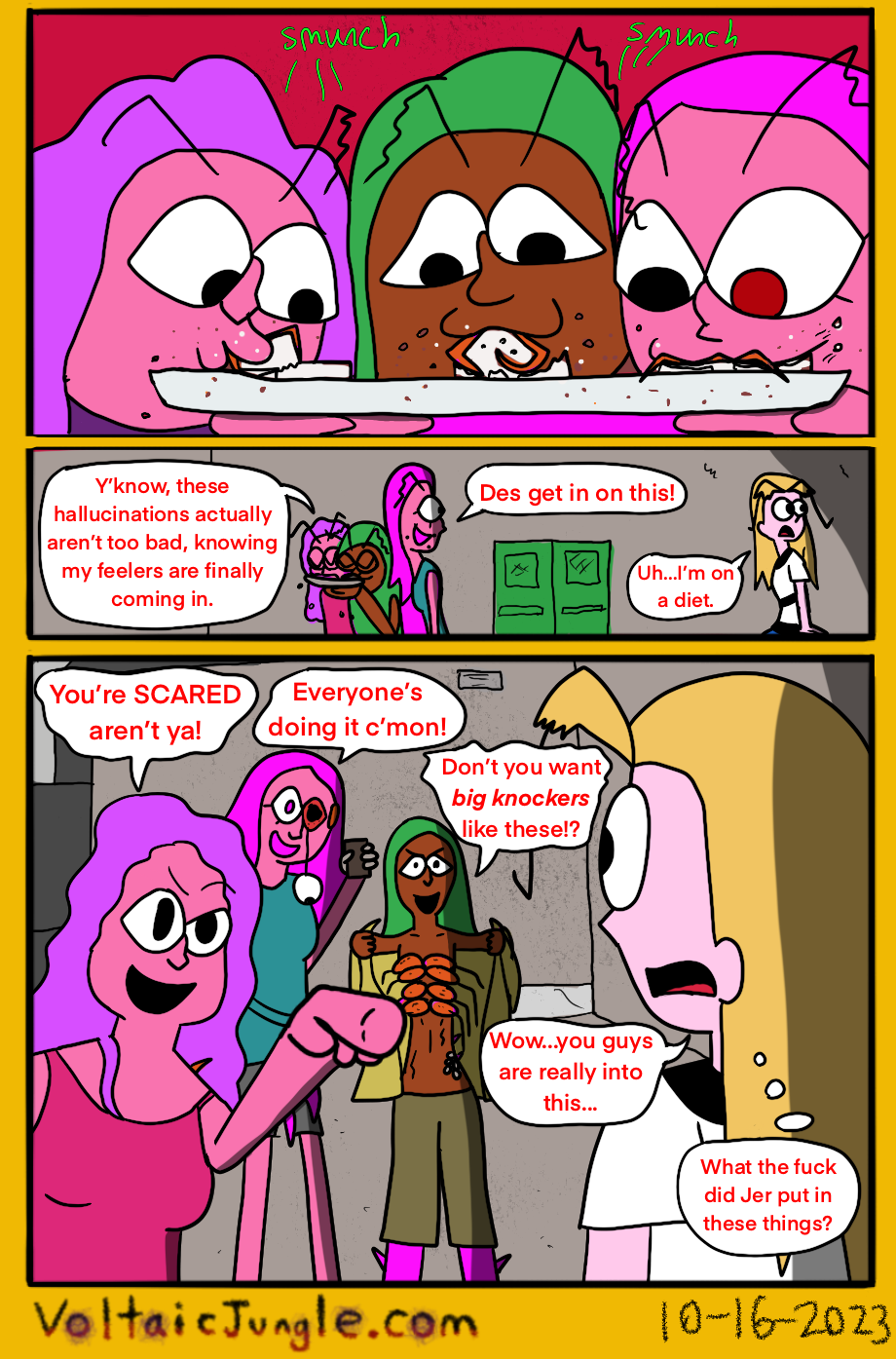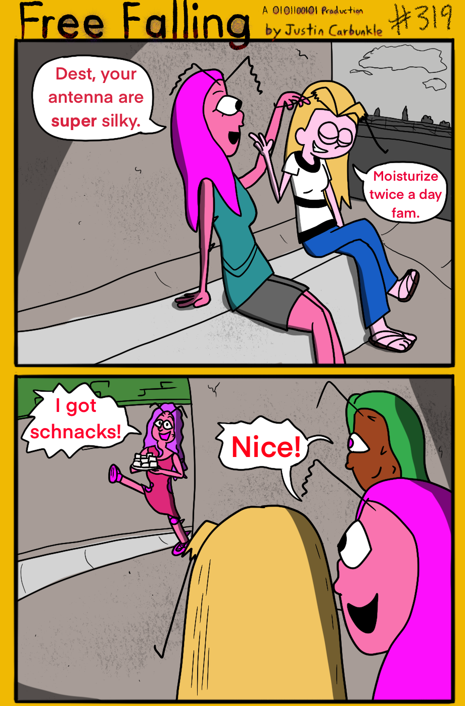 The hit early 2000’s cartoon continues churning out new adventures! Rebooted back to their iconic teenage selves, our six protagonists must cope with their renewed, seemingly endless existences. Watch these poor souls continue to entertain forever and ever and ever and ever and ever... Also available at www.voltaicjungle.com/free_falling