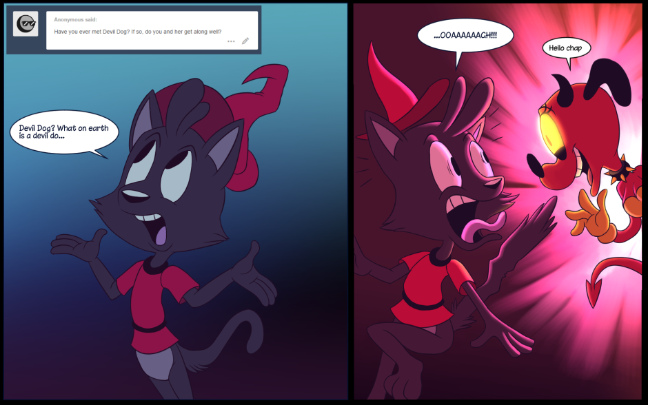 It’s been along time since we’ve had a magicat comic, time to fix that. Today magicat met the devil dog, why did she teleport behind him, I dunno.