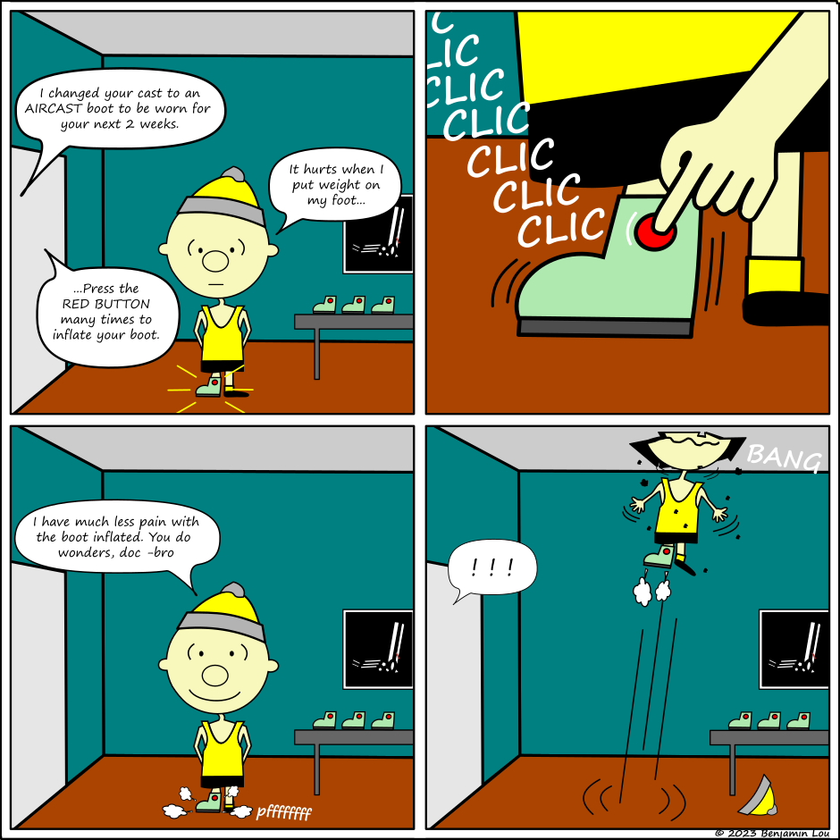 Don't get aircasted. To learn more about the proper use of an Aircast boot, read up on https://www.physioblou.com/en/elbro-physio/aircasted