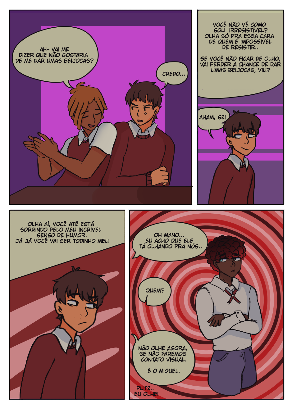 A historia se vê em volta de Arthur e Matheus, amigos inseparáveis desde a infância. Em um dia qualquer na escola, Arthur e Matheus estavam conversando sobre uma fofoca que estava rolando pelos corredores. O assunto? Miguel, um garoto que tinha se tornado famoso por ser o maior flertador da escola. Enquanto os dois discutiam sobre quem seria a próxima vítima de Miguel, algo surpreendente aconteceu: Miguel apareceu na frente deles e, para o choque de Arthur, começou a flertar diretamente com ele, mudando completamente o rumo da conversa e da amizade entre os dois.