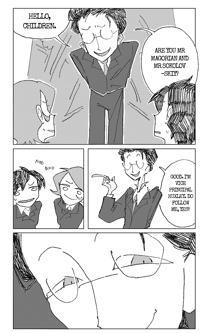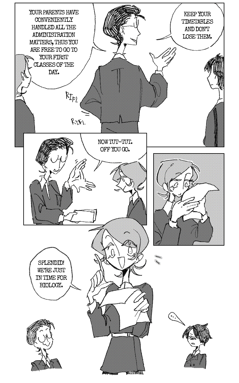 Invictus Magorian arrives at Brutammé’s halfway into the school year, and it doesn’t take long for him to notice something’s off about the school. World War II is raging, the perfect cover for a certain scheme of human experiments on students, to enhance the potential of their tiny little brains and bodies, all while using the war as a distraction so no one suspects a thing. Naturally Invictus is horrified and tries to stop it, with a small problem: he doesn’t know how.