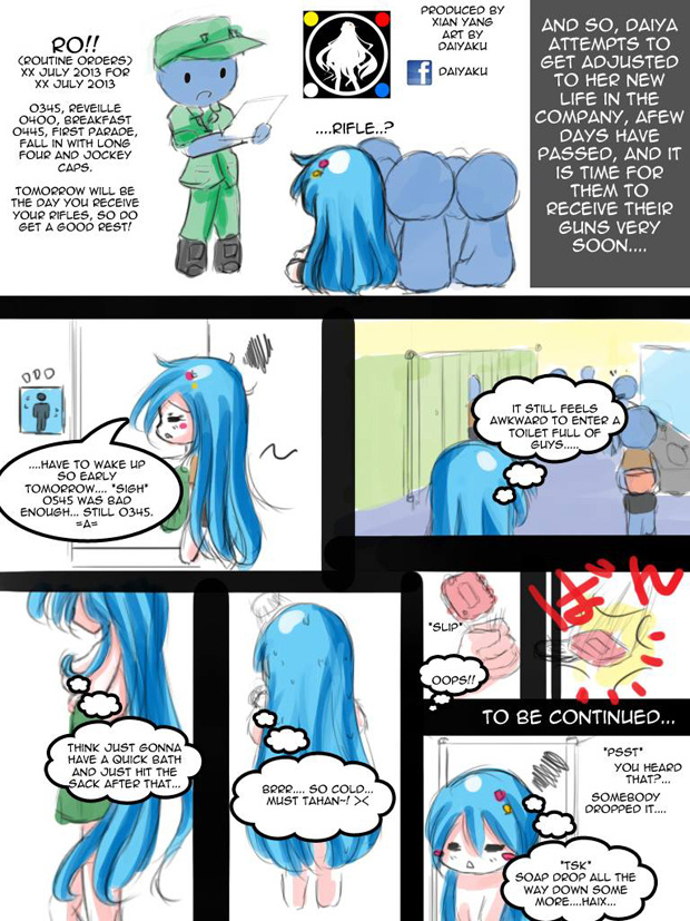 Routine Orders are given usually at the end of the day just before soldiers are allowed to go back to their bunks to rest for the day, in which they are briefed on what to expect for tomorrow and any important messages.
