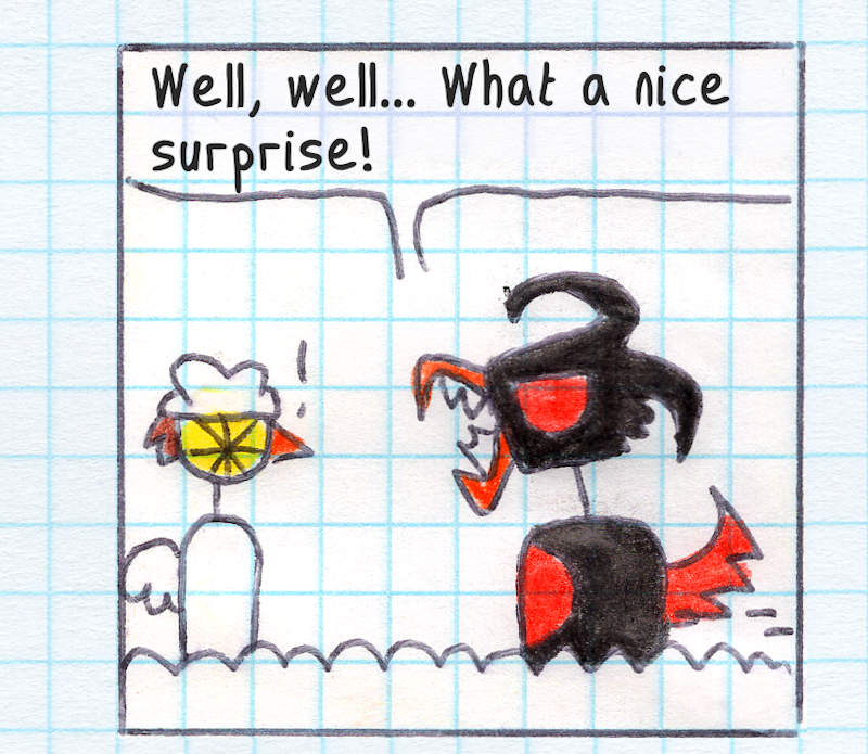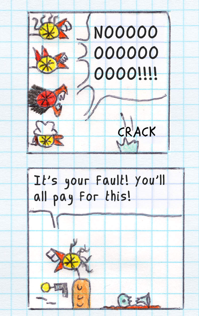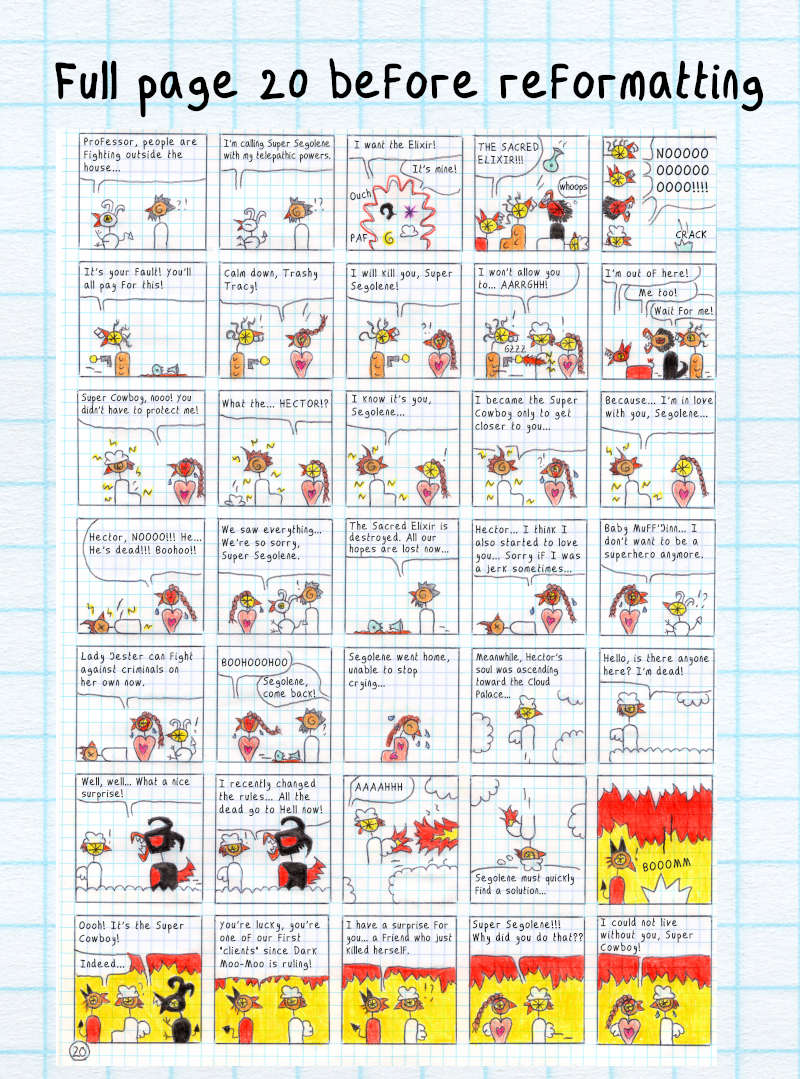 Action, drama, and twists. I love this page! I think it's around this point that I started to get a clear sense of the story's tone and direction. I began loosely planning what would come next (~5-10 more pages ahead) in my head, without any notes or outlines at this stage. Only later did I realize I was creating short story arcs of around 15 pages each, which I eventually called Episodes.