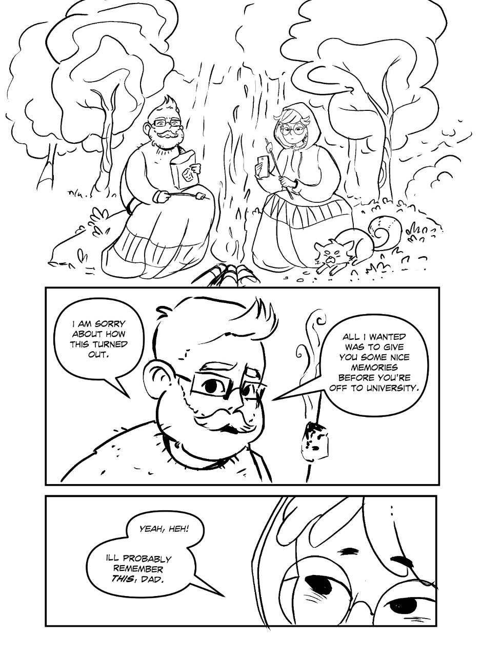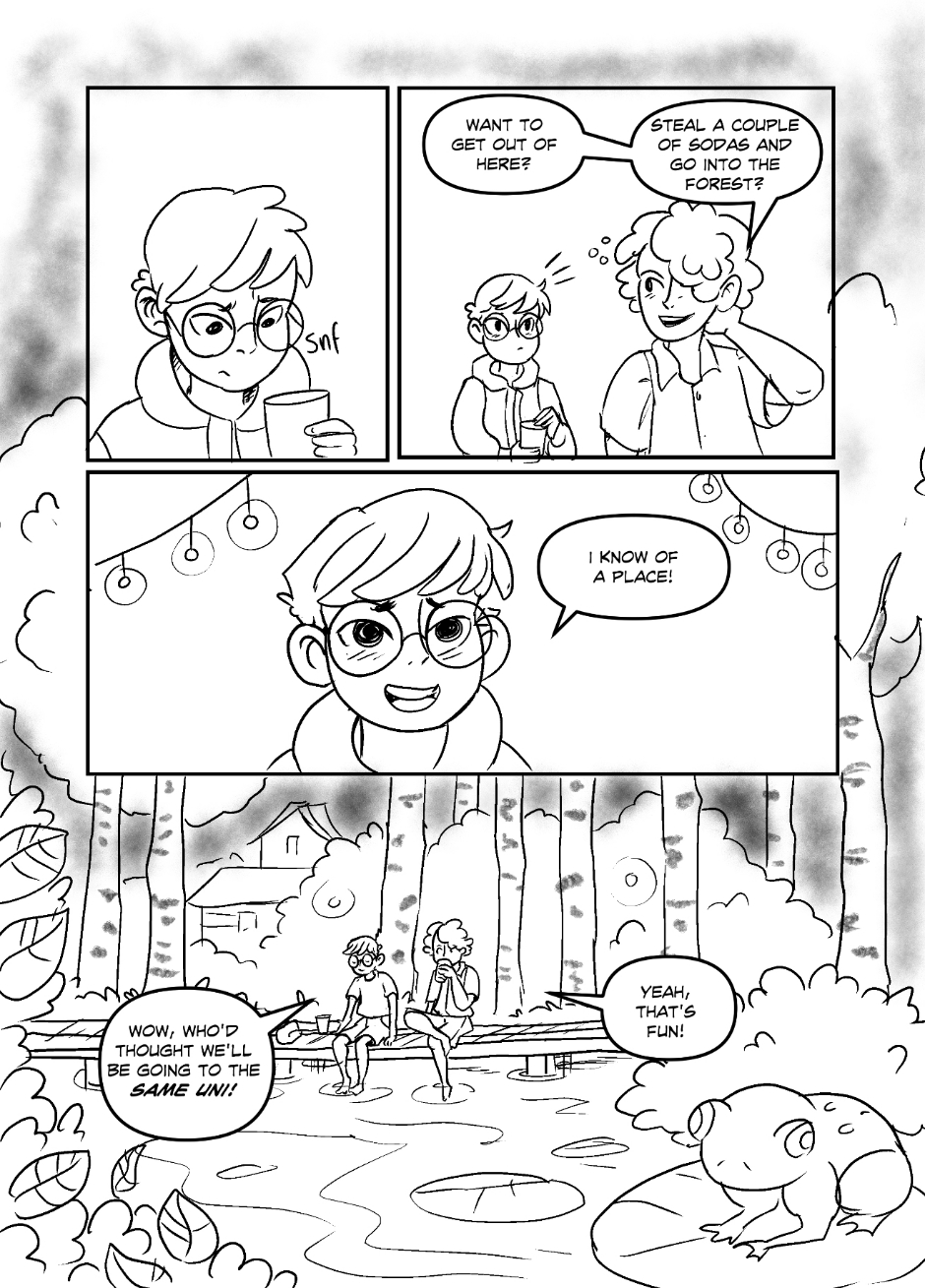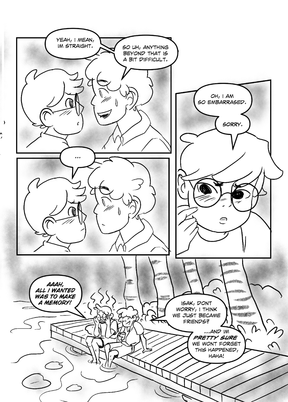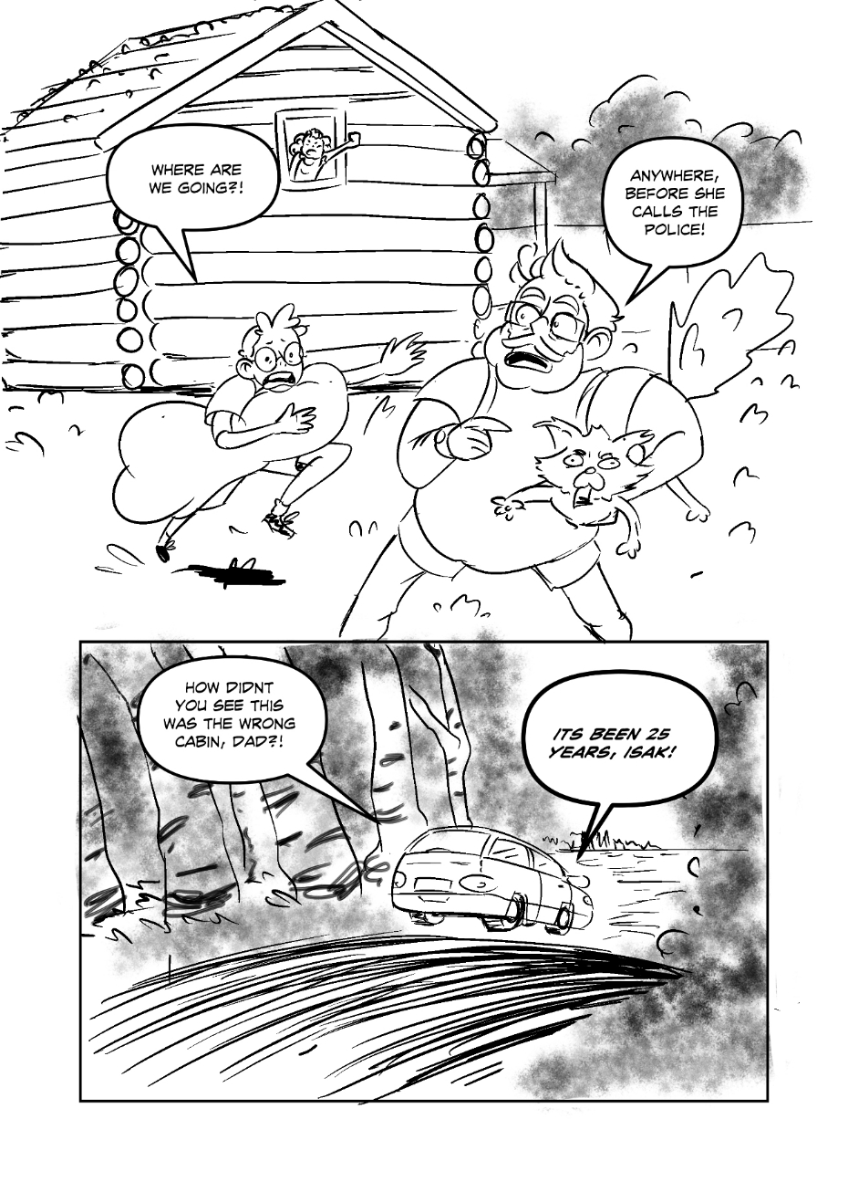 I made this comic in 2023 at the yearly event "24 hour comic marathon" under Oslo Comic expo, a comic book festival in Norway. 24 contestant were placed to draw at the library for 24 hours straight with nothing but alot of snacks and coffee. My hands cramped up like hell at the end so the comic is sort of wonky, but hopefully you can look past it! I finished it around 8 in the morning.