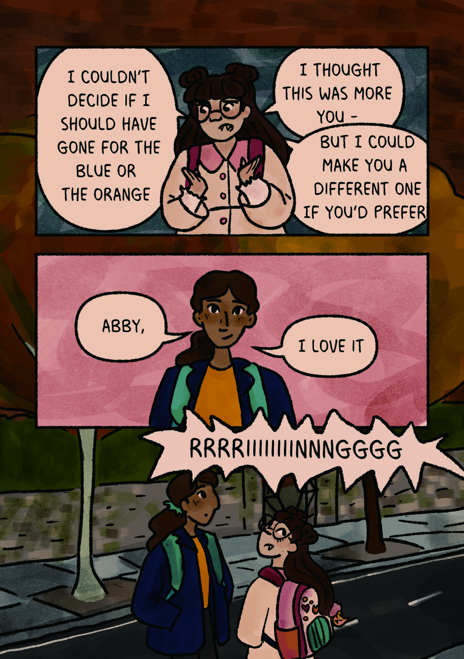 Abby, Jess and Marjan are three teen friends in a cosy, supernatural friendly town. But now, Abby’s vampiric bloodlust is starting to manifest, Marjan’s getting really interested in witchcraft, and Jess’ first ever werewolf transformation is officially happening, whether they like it or not! Will they be able to navigate these monstrous transformations and the feelings that come along with them?