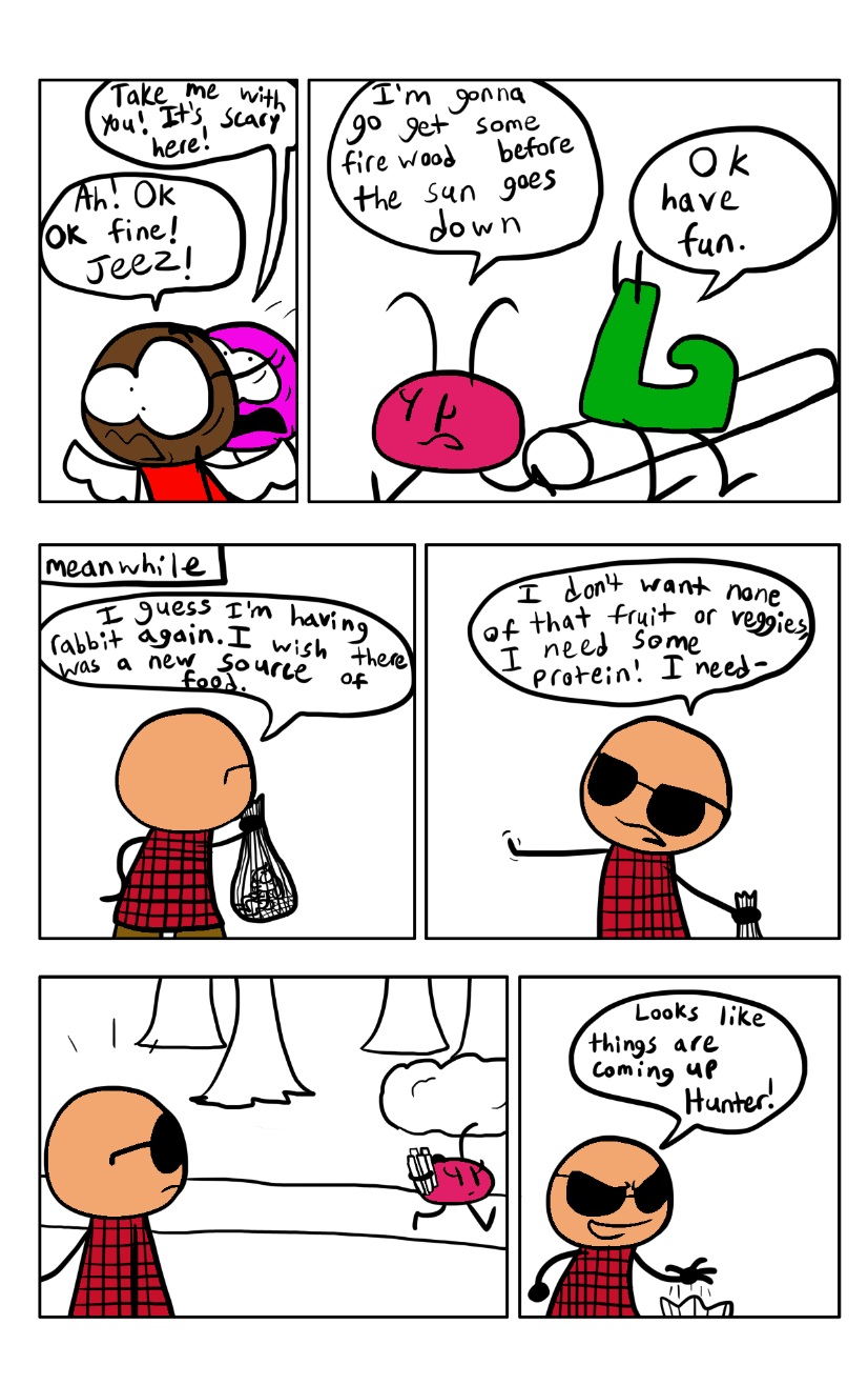 Nancy goes out to get firewood for her camping experience, little does she know it's hunting season...