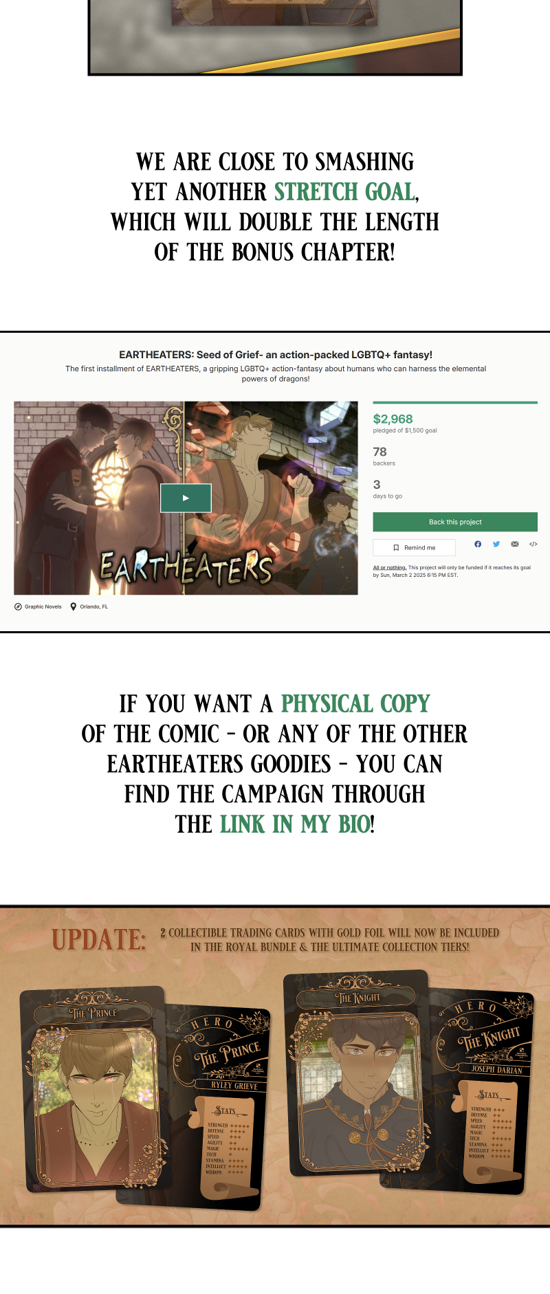 Just three more days left to support the Kickstarter! ✨ Thank you so much for all your support so far! ❤ If interested, you can check out the campaign here: https://www.kickstarter.com/projects/elementpublishing/eartheaters-seed-of-grief-an-action-packed-lgbtq-fantasy