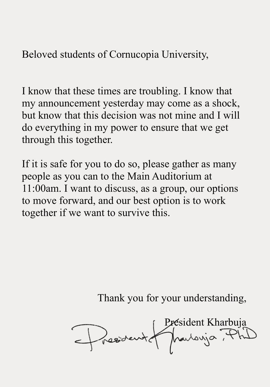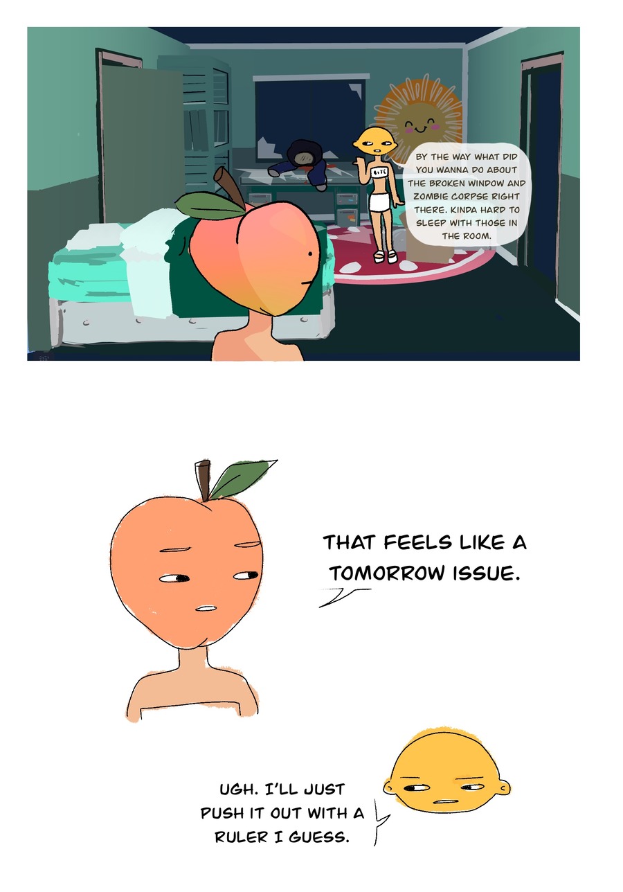 P-Chi and Sagwa have arrived at Cornucopia University, but when they go to their first college party, they suddenly come face to face with a mold spore zombie apocalypse. Can they not only survive this disaster, but use their biochemistry skills to work towards making the cure?