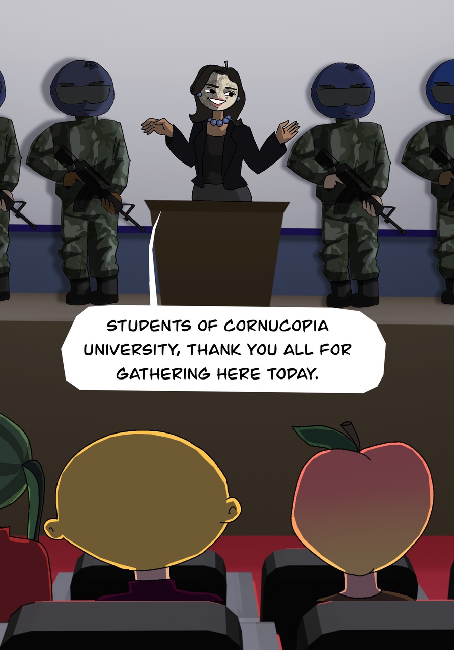 P-Chi and Sagwa have arrived at Cornucopia University, but when they go to their first college party, they suddenly come face to face with a mold spore zombie apocalypse. Can they not only survive this disaster, but use their biochemistry skills to work towards making the cure?