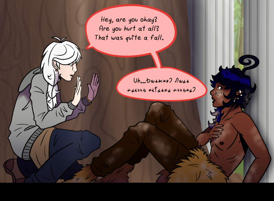 After suddenly appearing in a new world, Ulakei finds himself surrounded by wolves, fae, gods, demons, and strangest of all: Humans. One catches his eye when he's forced to share a space with Rune. An easily-flustered human with albinism, strange abilities, and a difficult past. The two get closer as they try (unsuccessfully) to keep out of trouble and return Ulakei to his own world, all while solving the mystery of how he got here in the first place.