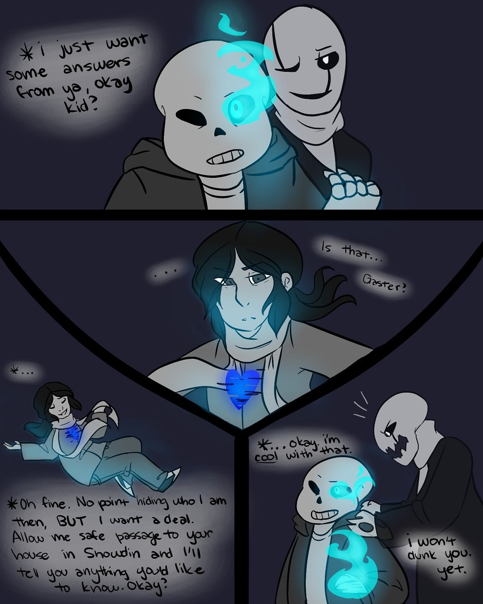 A secondary comic that will be worked on when there is free time. Also an Undertale based comic, Sans finds some old blueprints of Gasters and figure out about something or someone called "The PLAYER". In a turn of events, he must go through the game again but with a new participant.