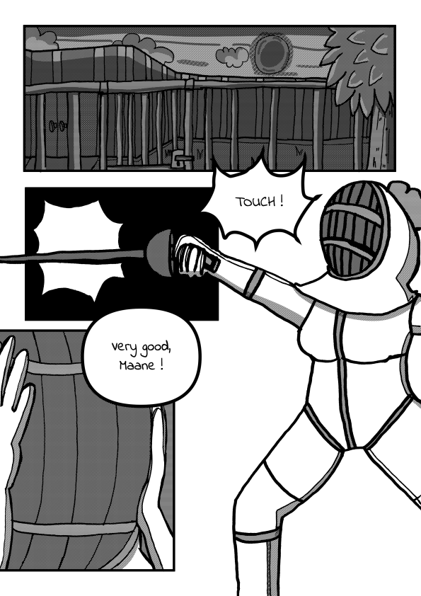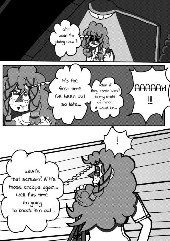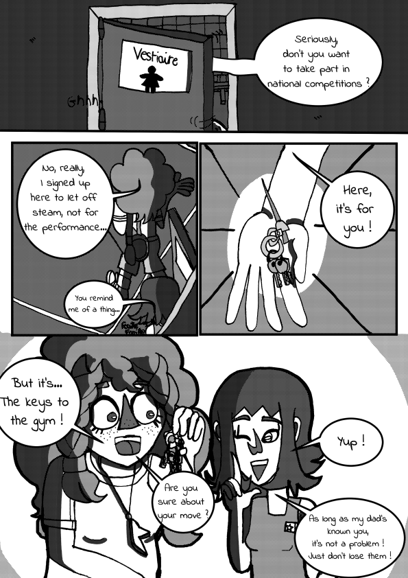 Fortunately, she has fencing to alleviate her worries. One evening, with her anger mounting, she decides to run off to her sports gym in the middle of the night. She meets some strange people who don't seem to want anything nice to do with her...