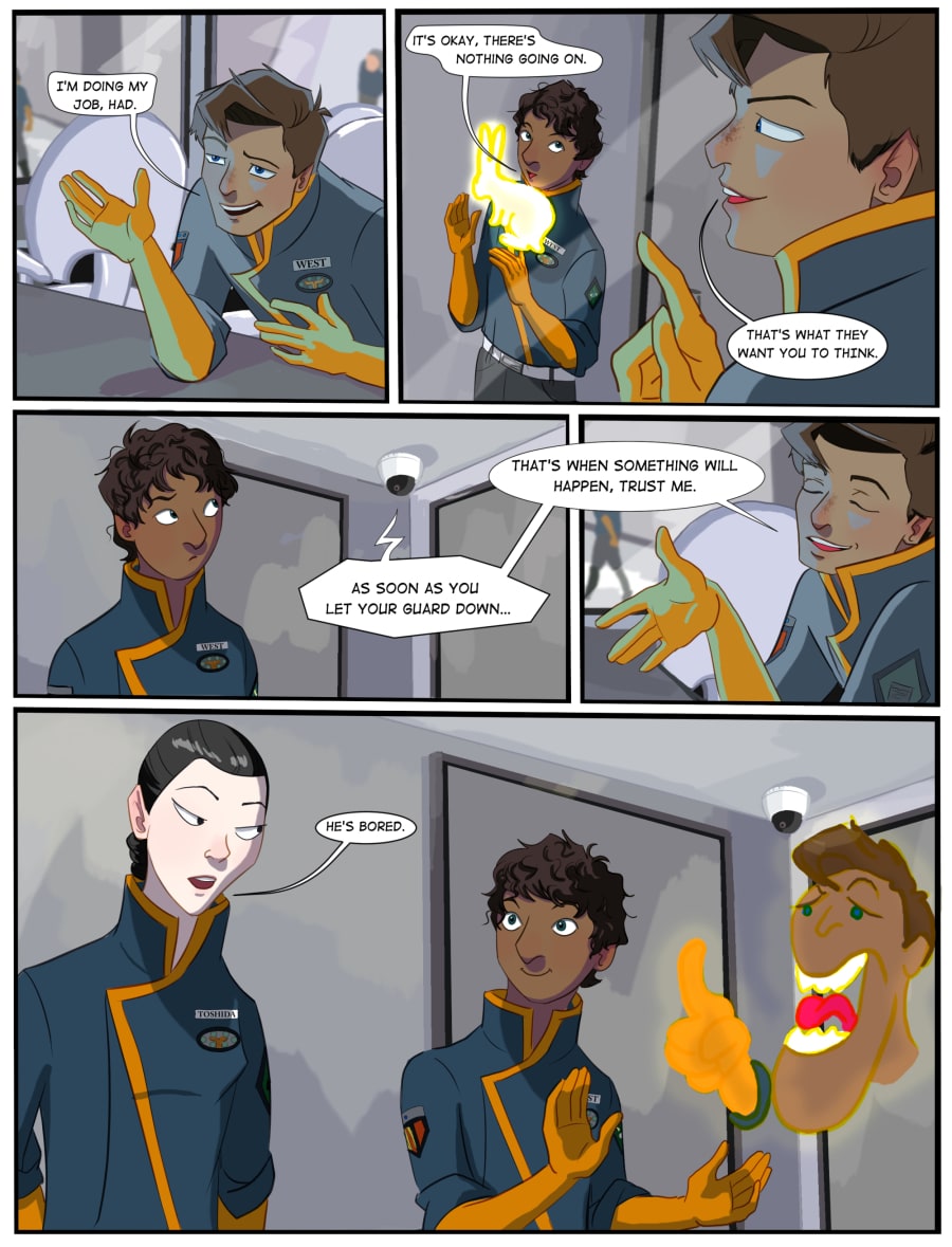 Ambitious agent Oliver West wants nothing more than to rise to the ranks of prestige. Yet he's stuck as a politician's escort with his sibling Hadley, along with other greenies Stacy Burkley, Ihab Michealson and Kyoko Toshida.