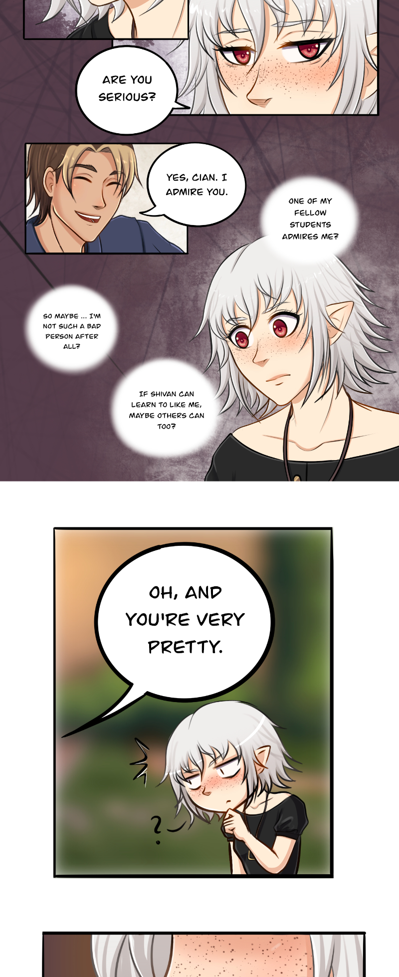Cian studies magic in an academy for magicians. But she doesn't have any magical powers. The other students bully her and she's having a hard time. Things escalate, she gets attacked by a mysterious stranger, fights with her bully Bianca and finds out about a secret that changes her whole life. All leads to a dangerous journey full of obstacles, in which she's accompanied by a grumpy half-demon.