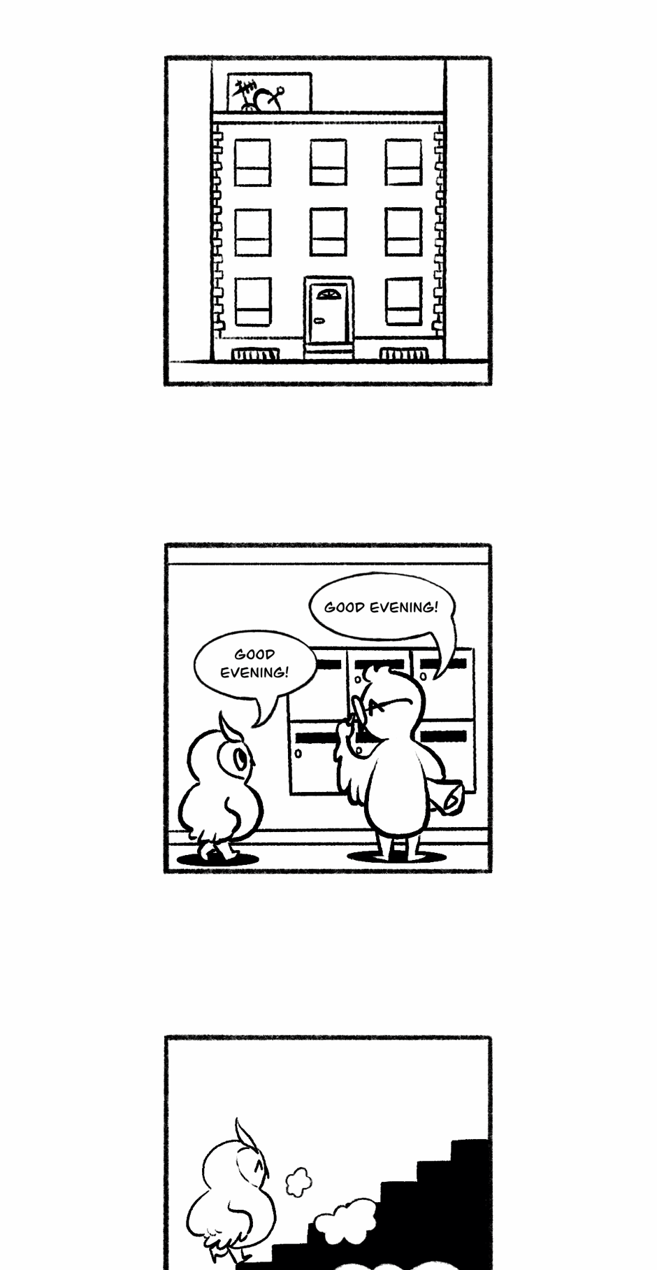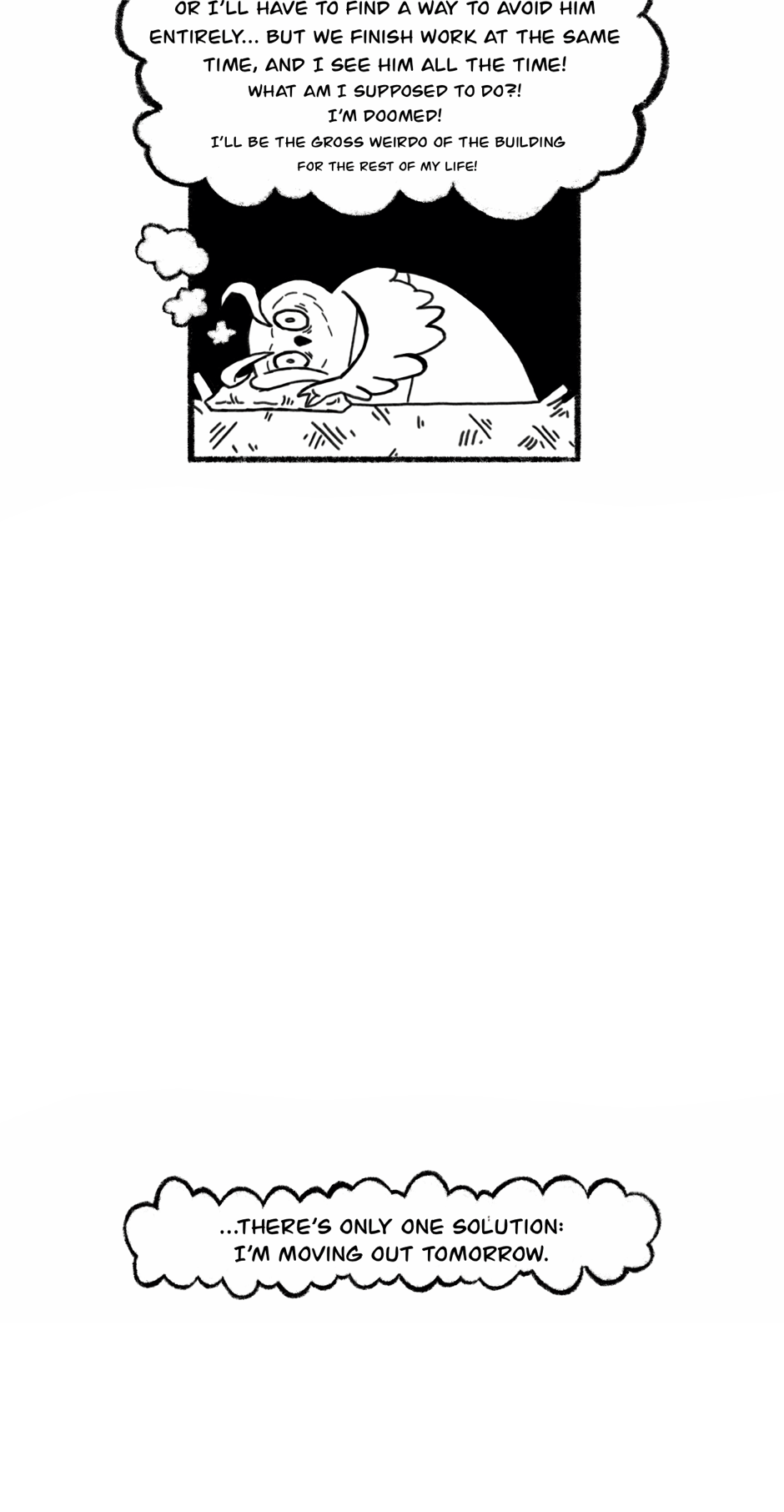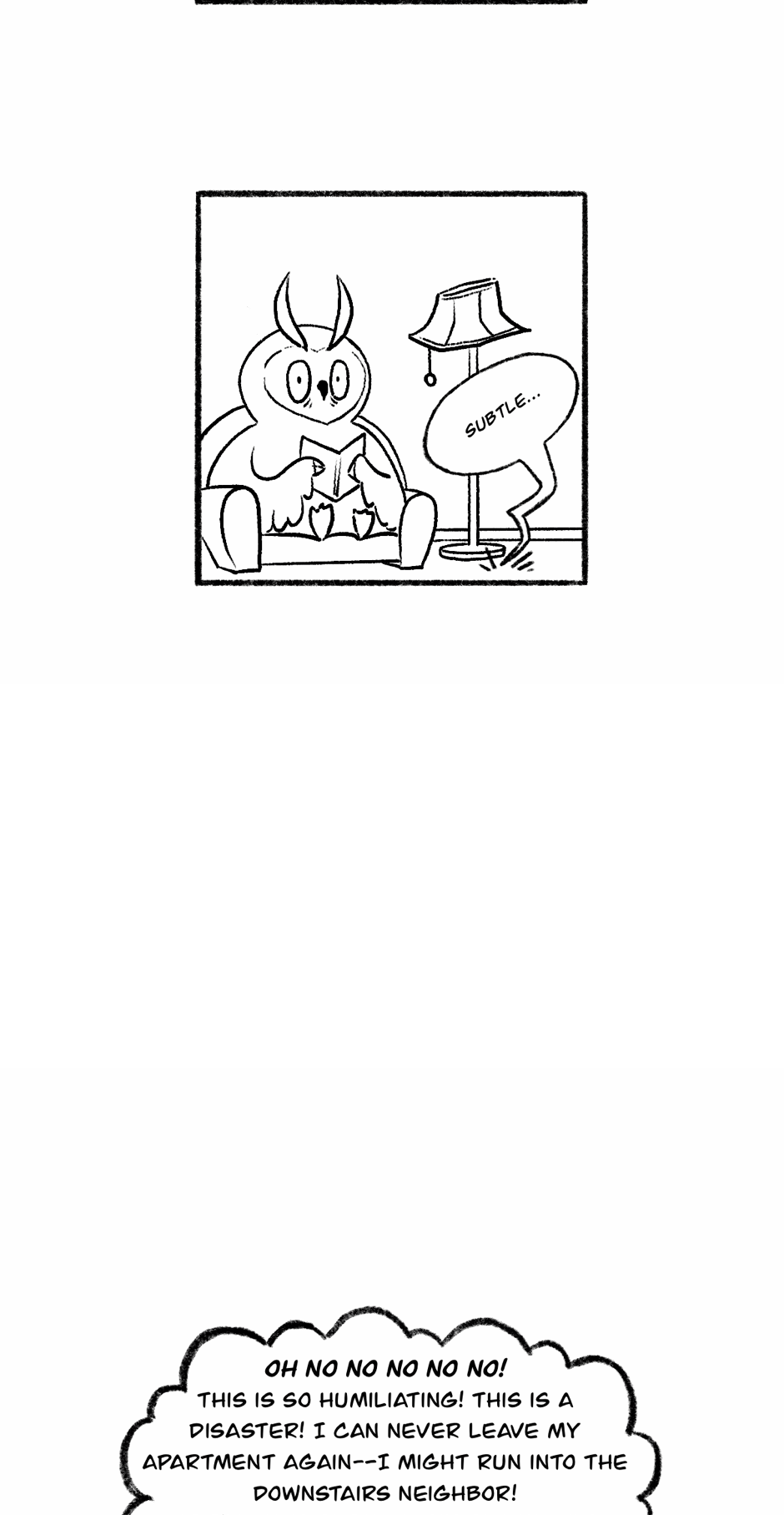 An owl crippled by anxiety tries to survive his daily misadventures. This is a lighthearted series that I draw on my free time to unwind and it shouldn't be taken too seriously. I know it isn't very original but I thought it'd fun and somehow relatable (I hope!).