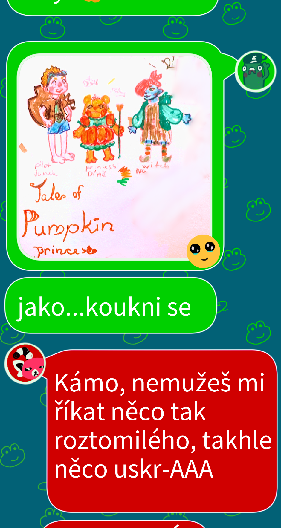 Zde je malý příběh o tom, jak tento komiks vytvořily dvě z mých postav. Seznamte se s Tjem (zeleným žabákem) a Jayou (pandou červenou), kteří právě zahájili jeden ze svých nejchaotičtějších projektů